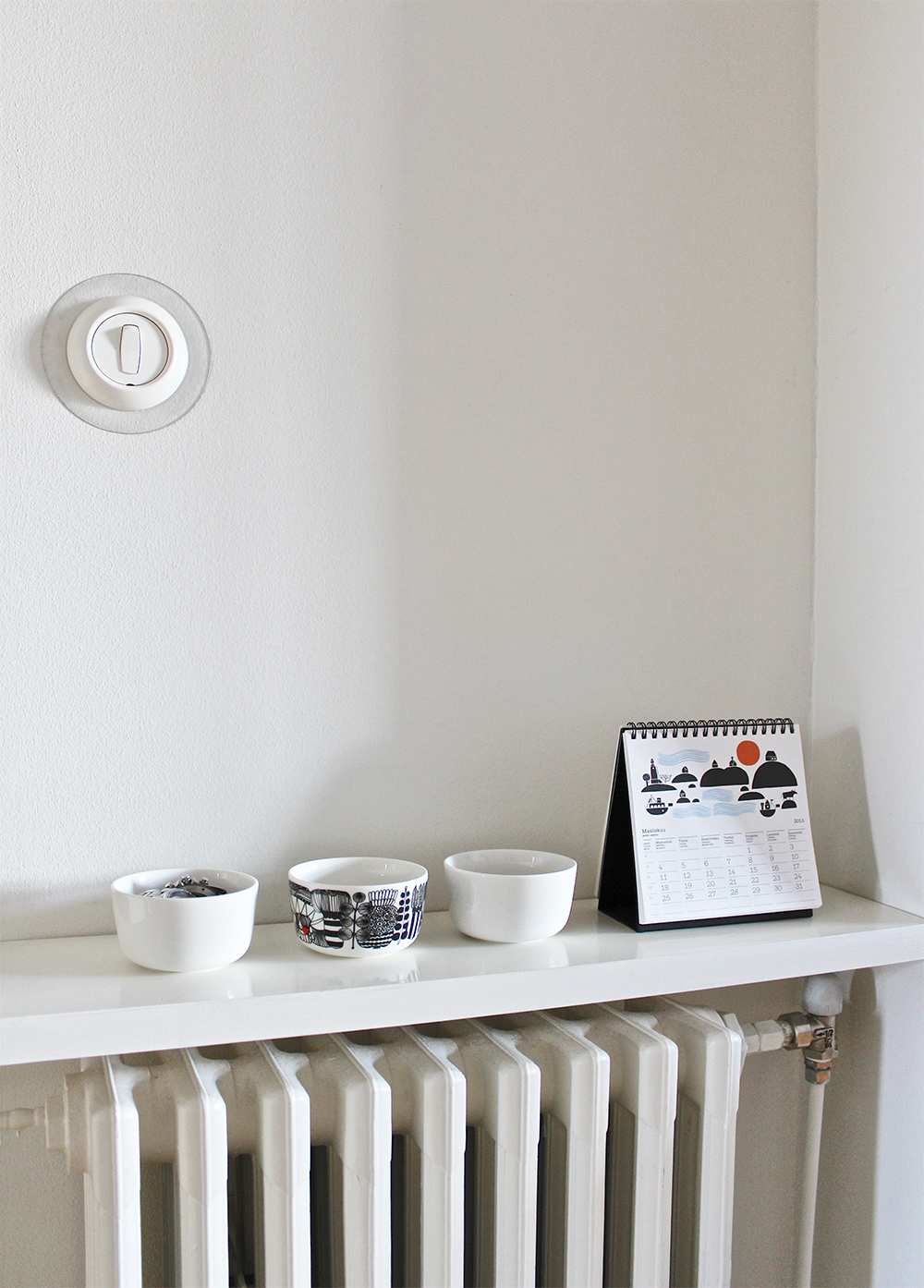 Kolikot, avaimet ja muut pikkutavarat säilyvät söpöissä keramiikkakipoissa. Graafinen taitettava pöytäkalenteri pitää päivät järjestyksessä, tai se on toivottavaa, heh.