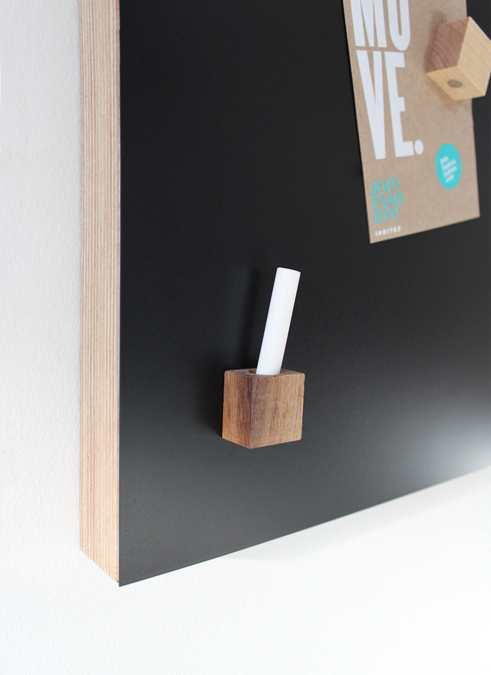 Yksinkertainen ja toimiva sisustuselementti, jossa oivaltava yksityiskohta: liidulle oma kolo yhdessä magneeteista! Näin ollen liitu pysyy aina tallessa.