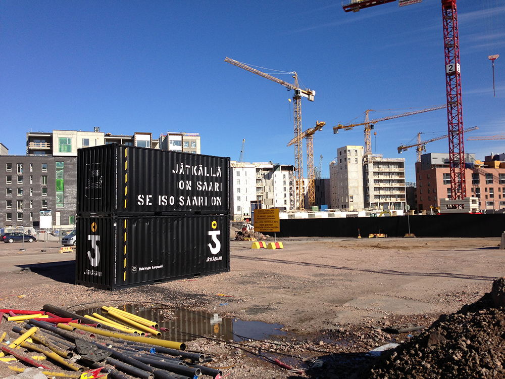 Mutta paljastetaan tässä vielä yksi asia: asunto sijaitsee Etelä-Helsingin uudella asuinalueella Jätkäsaaressa! Innokkaana olen pyörinyt jo rakennustyömaalla ja napsinut kuvia. Välillä myös yöaikaan..
