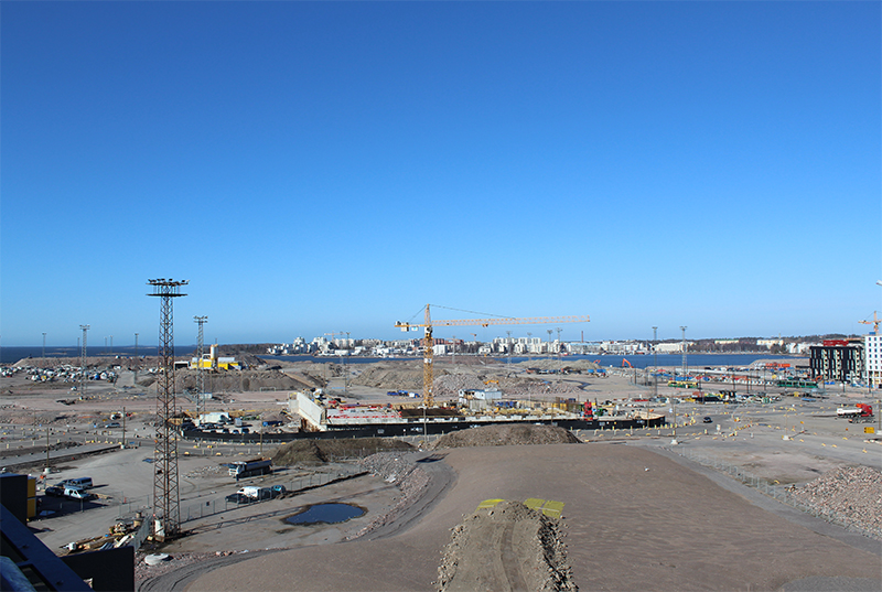 Valokuvia asunnosta ei vielä ole, koska se oli esittelyssä vielä kovin vaiheessa. Mutta terassilta nappasin maisemakuvan. Rakennustyömaata ja merta, tadaa! Kauempana näkyy Lauttasaari.
