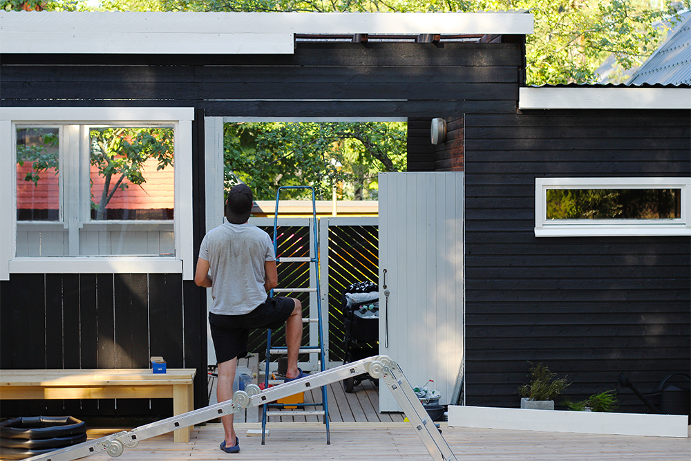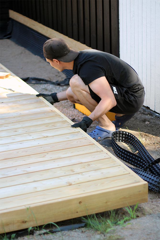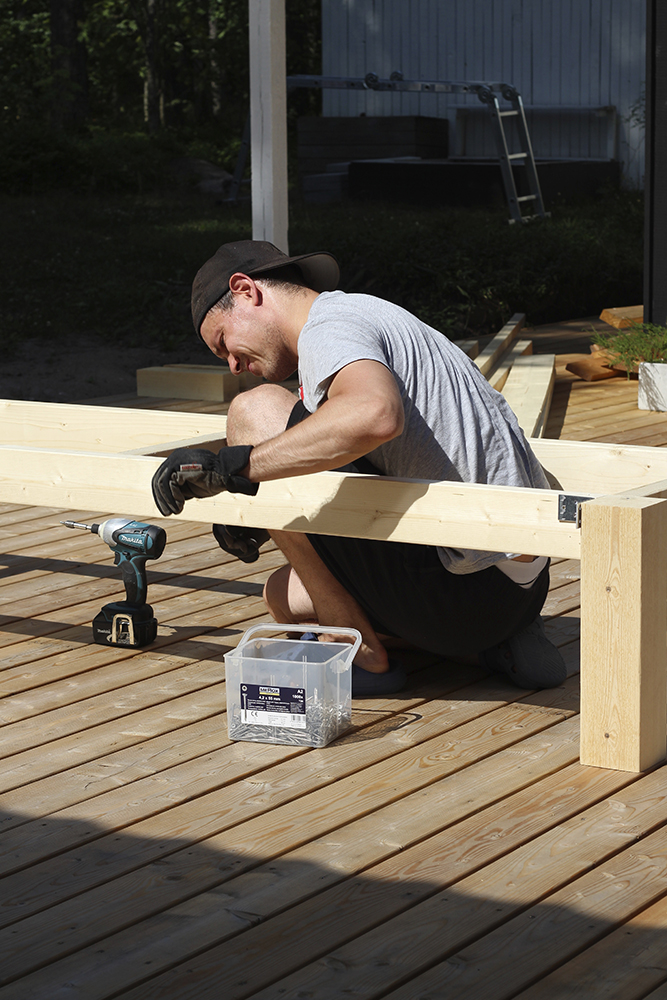 Terassin viimeistelytyötä on ollut paljon. Ikkunakarmien hiontaa, reunalautojen ja patolevyn asennusta, terassipenkkien rakentamista, ikkunalaudan spraymaalausta sekä pientä siistimismaalausta. Vielä puuttuu ikkunoiden tiivistykset, kivijalan maalaus, terassipöytä, mullat, istutukset, spottivalot ja istuinpehmusteet. Joo, onhan tuota hommaa vielä, mutta hyvällä mallilla alkaa olemaan.