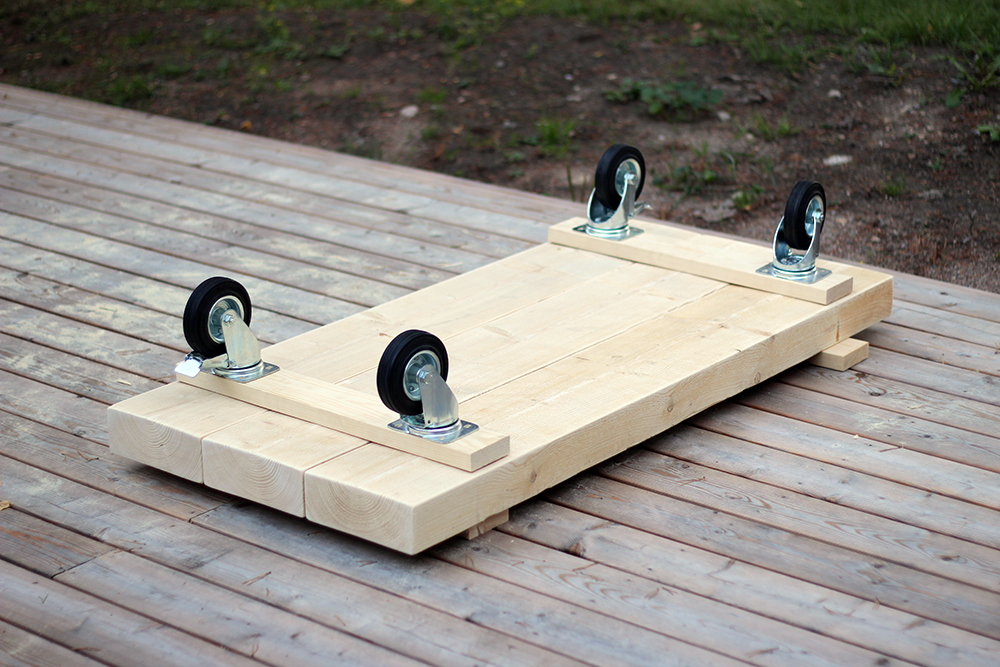 Suuntasin Espoon OP-Puuhun, josta tarttui mukaan 75 mm paksua kuusipuuta valmiiseen pituuteen sahattuna. Teollisuuspyörät löytyi Rengastalosta. Materiaalit viimein hommattu, eikun hommiin!