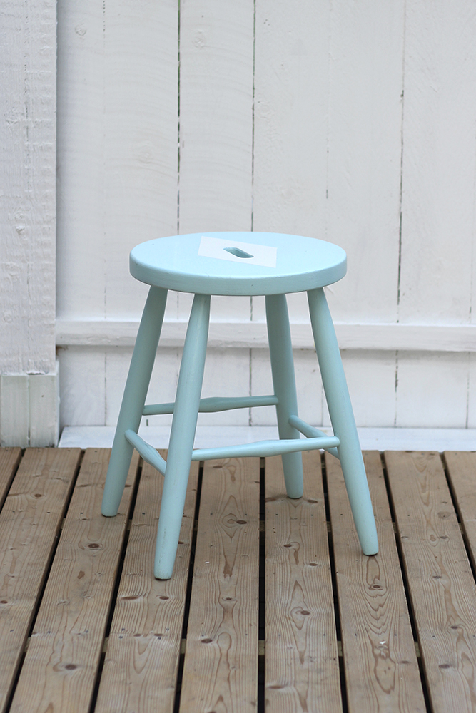 Sain äidiltäni kaksi vanhaa puujakkaraa. Jakkarat olivat Jyväskylän asuntomessuilla esillä Älvsbytalon lastenhuoneessa, jonka äitini sisusti. Kävin kuvaamassa kohteen esitettä varten ja pyysin jakkaroita itselleni vaivanpalkaksi, sitten kun messut ovat ohi.