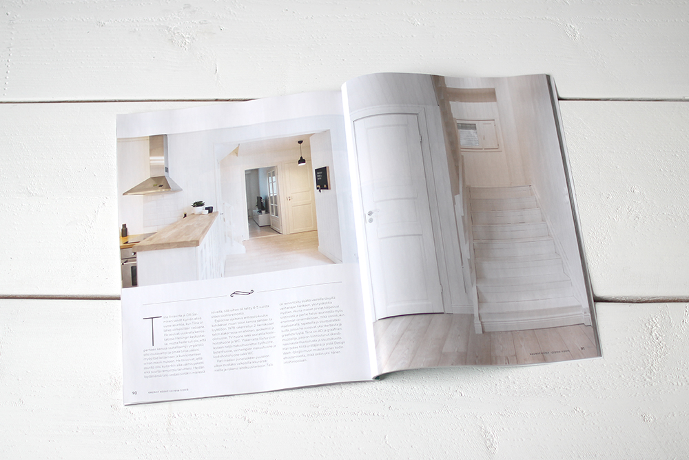 Kauniit kodit -sisustuslehden päätoimittaja Inkeri Ala-Peijari ja valokuvaaja Risto Ala-Peijari kävivät meillä viime elokuussa kuvaamassa kotimme.