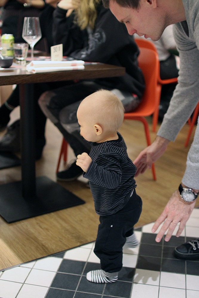 Nuka siellä taas lähti painamaan. Toinen kun on oppinut juuri kävelemään, niin täytyy päästä treenaamaan uutta taitoa vähän väliä.