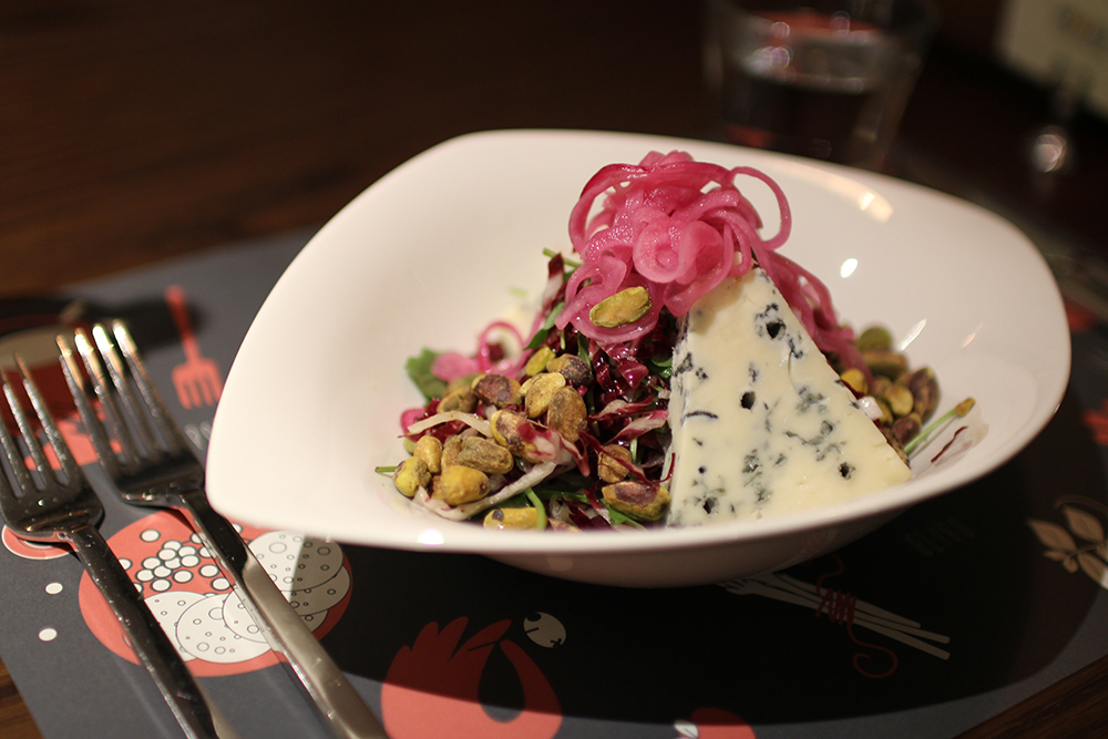 Valitsin alkupalaksi Radicchio con gorgonzolan, jossa oli punasikuria, gorgonzolaa ja pistaasia. Voi jösses oli hyvää!! Annos oli reilunkokoinen ja erittäin maukas.