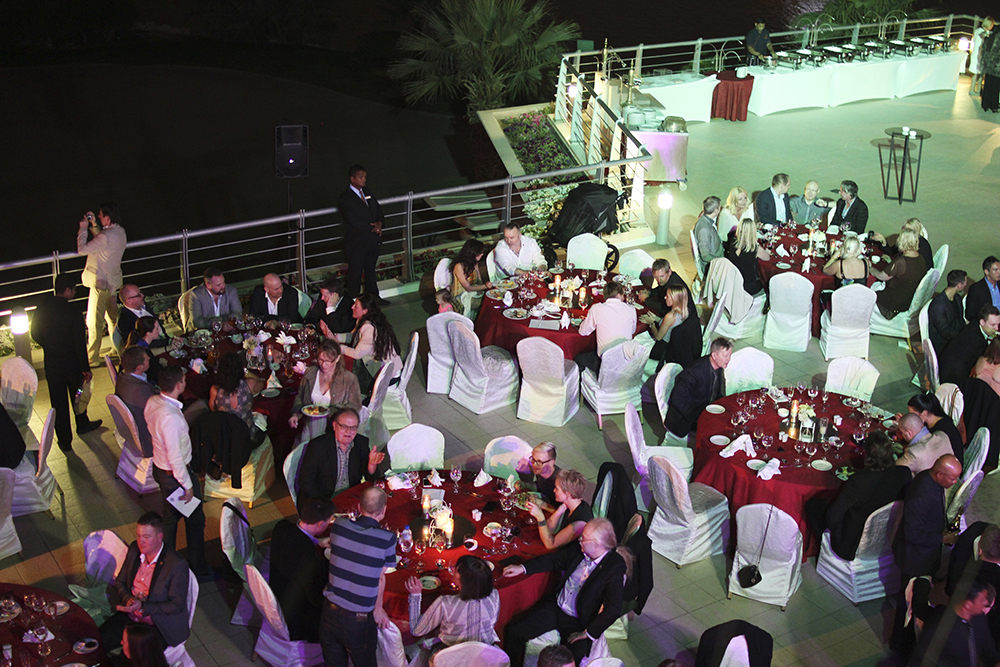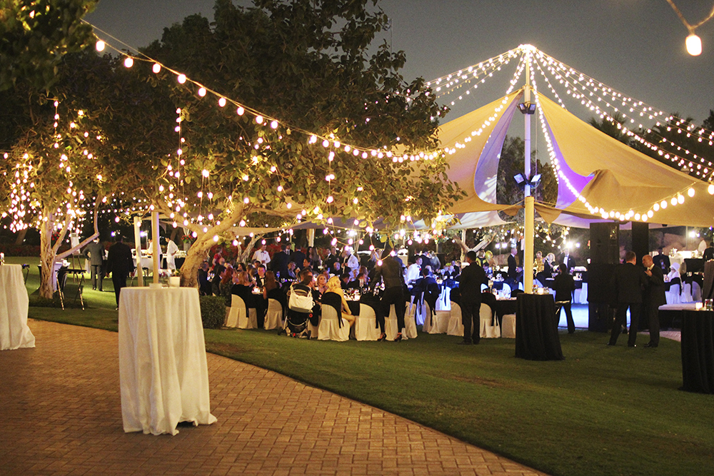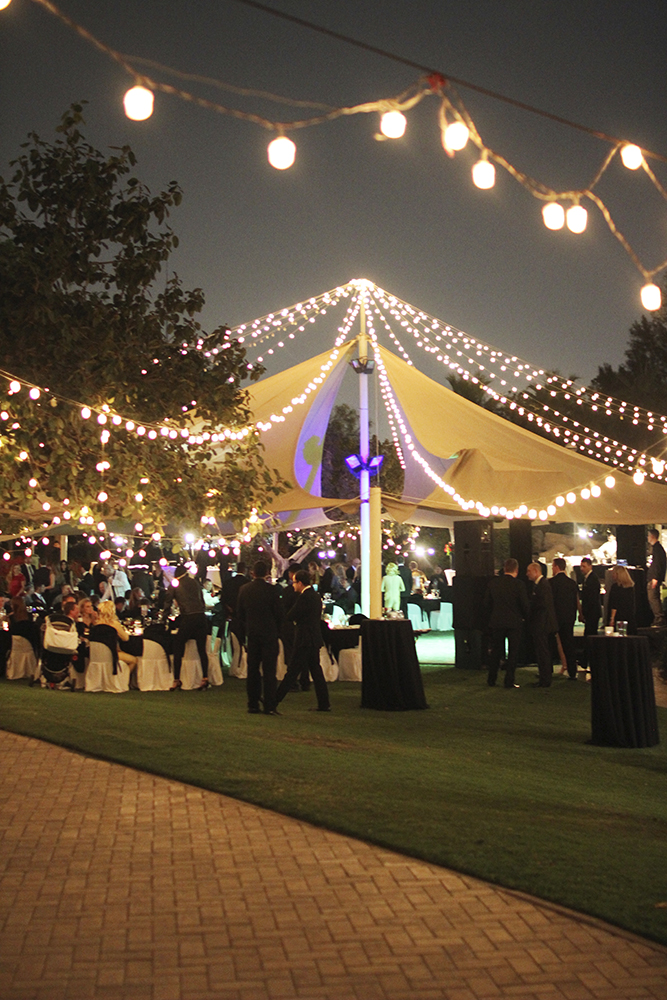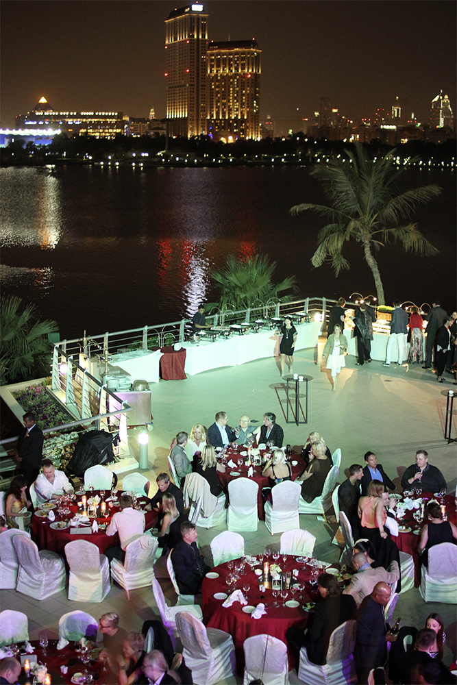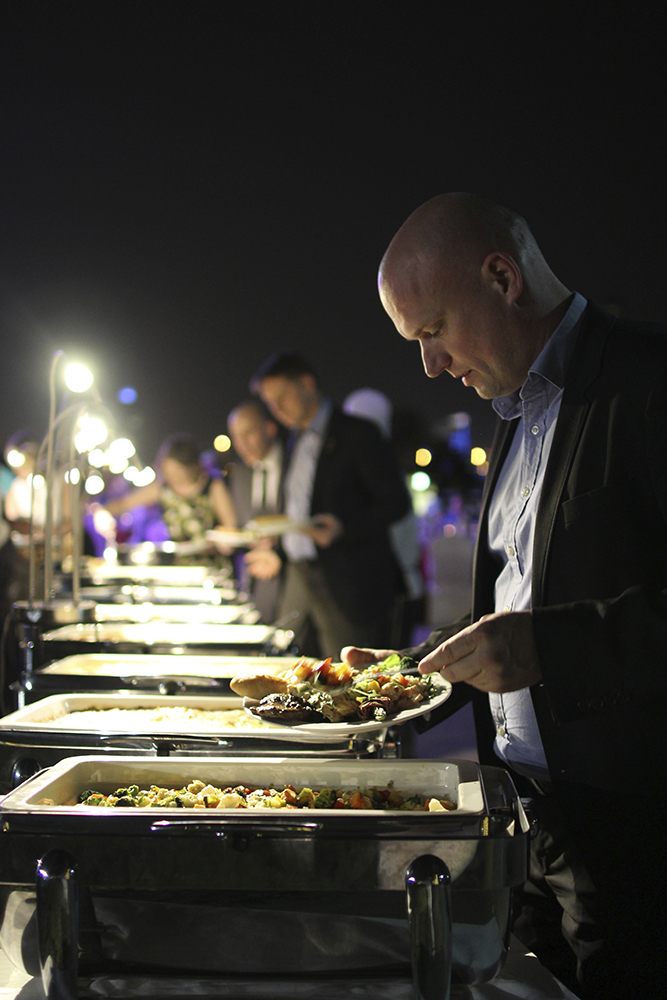 Illalla meille oli järjestetty James Bond -teemabileet. Siirryimme hotellimme kattoterassin kautta Hyatt Regency Dubai Golf Park -puistoalueelle, jonne oli rakennettu uskomattoman hienot puitteet teemaan sopivaksi. Paikka oli mielettömän upea ja ilma täydellisen lämmin, eikä yhtään hiostava.