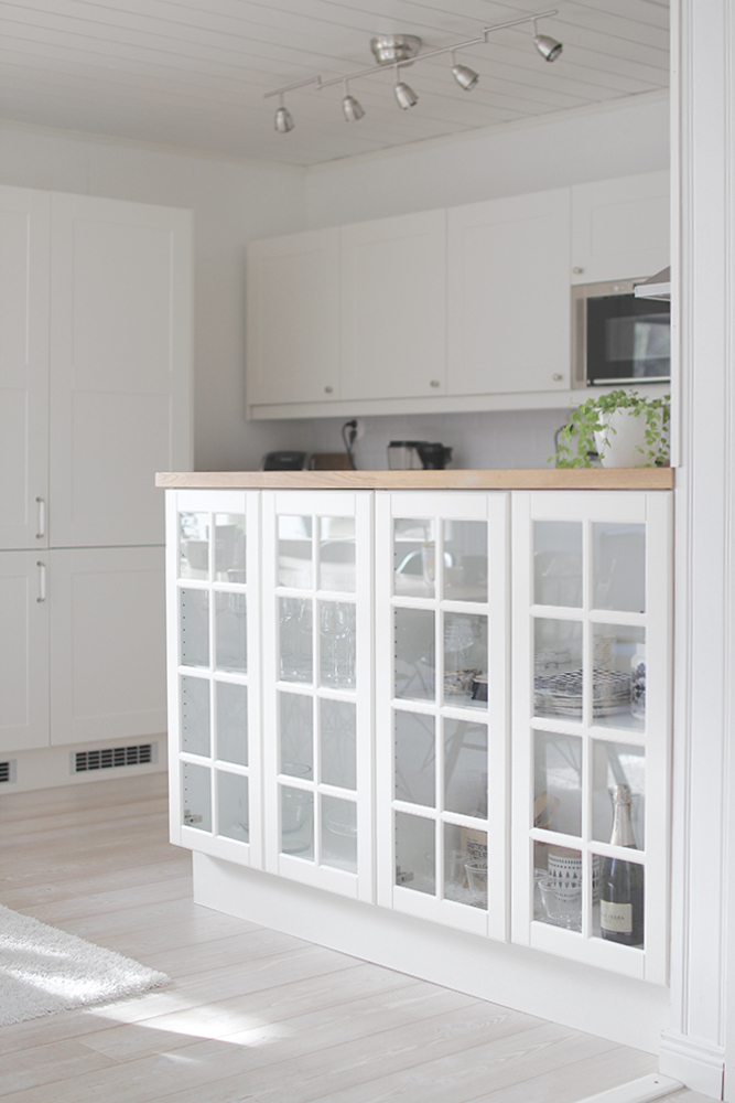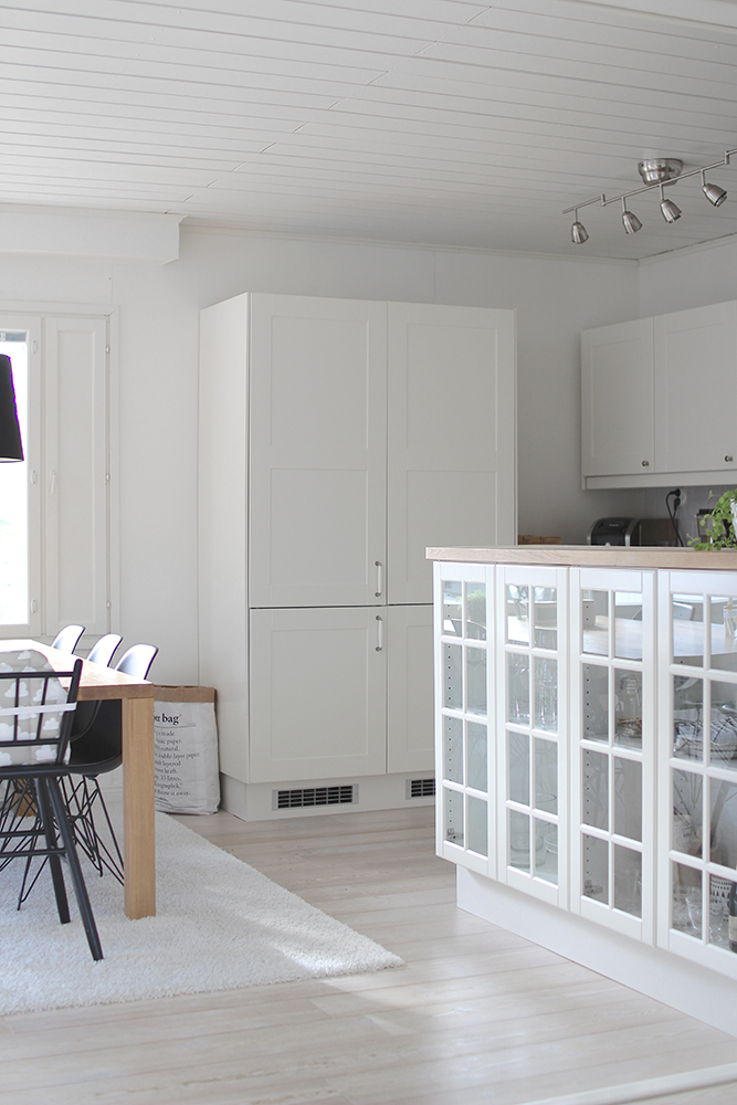 Minulle tuli mieleen, että nuo vitriininovet olisi ollut kivat mustana… Toisi särmää keittiöön 😊