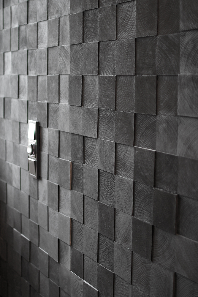 Luulen, että tuo puuseinä on Wall+ firman tekemä. Eli ei taida olla aitoa puuta, vaan kuviomuottiin tehty luonnonkuitukomposiitti. Tsekkaa sivuilta: http://www.wallplus.fi