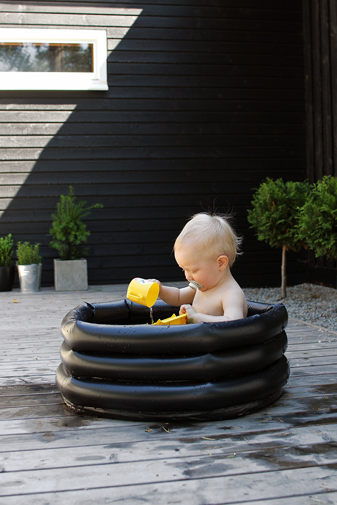 Pienimies tykkää kovasti läträtä omassa pienessä altaassaan. Hieman tuo viilennystä hikiseen päivään. Nukan loma päiväkodista alkaa viikon päästä, sitten voisikin lähteä vaikka jonnekkin tai nautiskella vaan omalla terassilla, joka pian alkaa olla valmis.