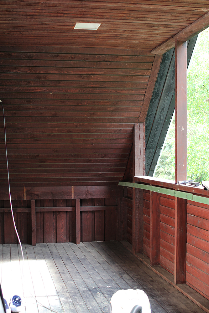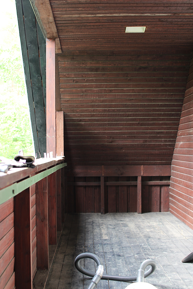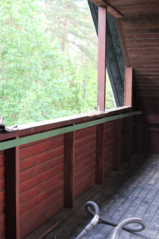 Yläkerran parveke on ollut omissa oloissaan jo pari vuotta, en edes siivonnut sitä muuttomme jälkeen. Siellä lojui vanhaa tavaraa pressujen alla ja oli ilmeisesti muutenkin alkuperäisessä kunnossa 70-luvulta. Olen käyttänyt parveketta ainoastaan petivaatteiden tuulettamiseen, muuten en ollenkaan. Mies ei varmaan koskaan parvekkeella ole edes käynyt – paitsi nyt. Laitettiin nimittäin parveke viimein kuntoon!