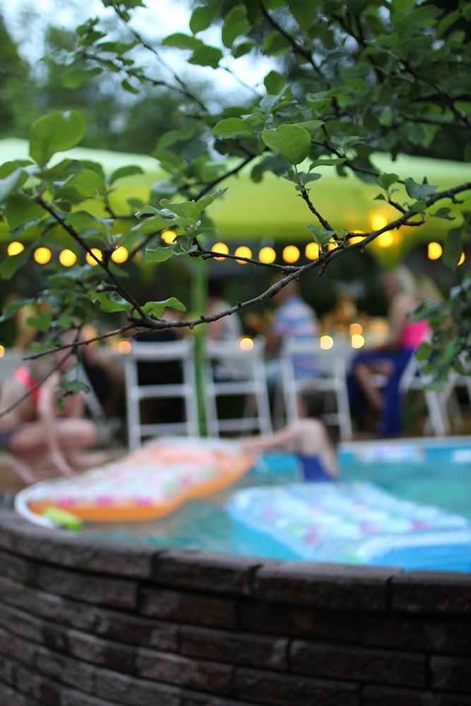 Saimme nauttia eräs viikonloppu ystäviemme upeista kesäjuhlista! Juhlat oli järjestetty myös lapsille, joten Nukakin pääsi mukaan. Siellä oli kaksi pomppulinnaa, palju, uima-allas, sauna, dj, mahtavat tarjoilut, juomat, ystävät ja paljon uusia tuttavuuksia. Ihan huikeet kotibileet! Huippua oli myös se, että mies katsoi Nukaa sen illan, minä sain ottaa rennon rantein ja hommata pikku hiprakan päälle.