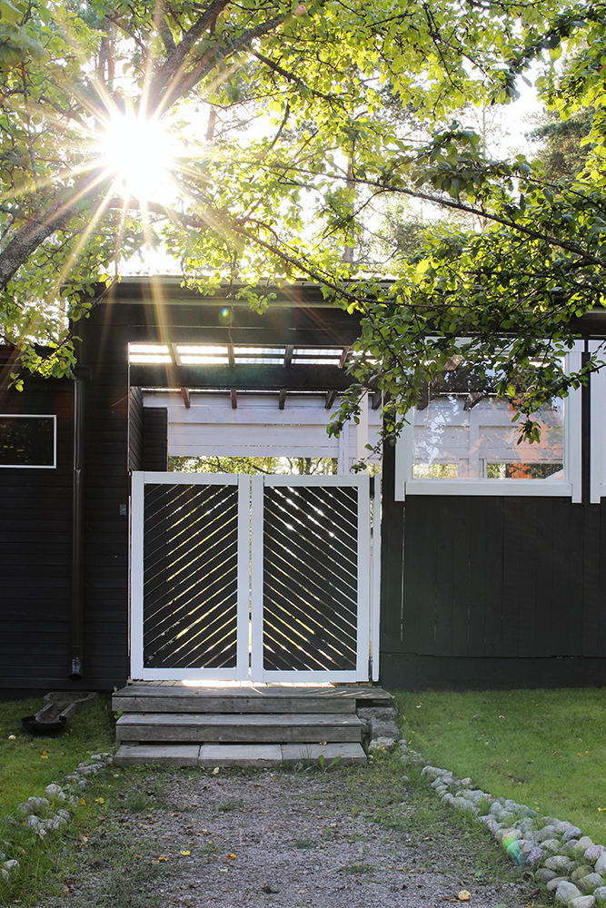 Olispa kiva, jos kaikki maalaisi talonsa mustaksi, näyttäis ryhdikkäältä koko taloyhtiö. Modernimmalta. Talothan ovat 70-luvulta. Onneksi jo muutama talo meidän lisäksi on sutinut talon mustaksi, vaikkei kuvassa näykään. Meillä on tuo kivireuna, muilla kun on vanhan pihasuunnitelman mukaan isot puskat. Näin sitä jokainen siis tekee kuten itse haluaa.