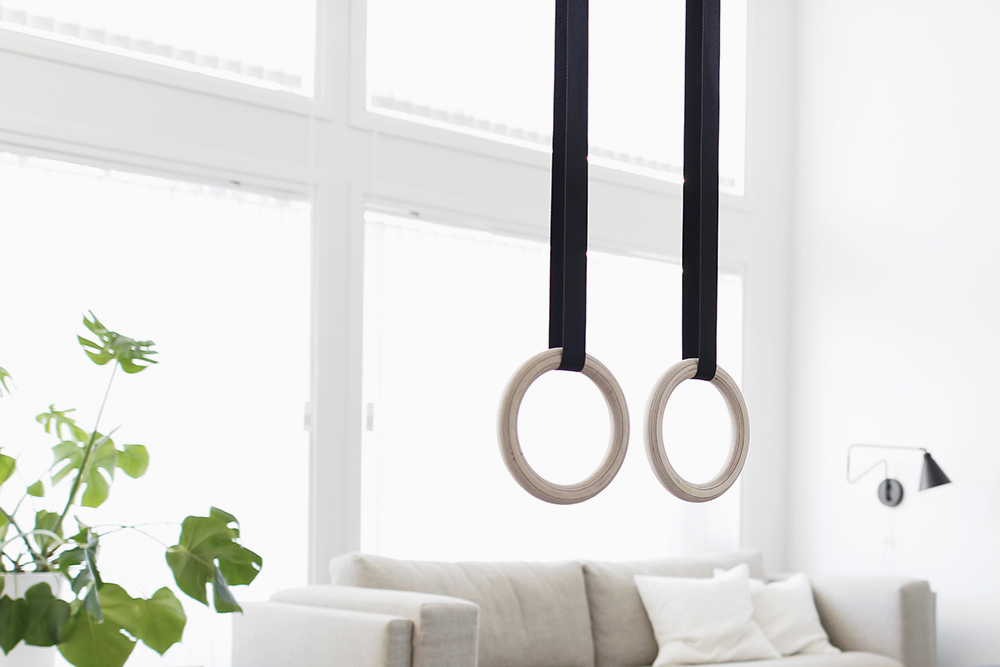 Voimistelurenkaita löytyy lasten sekä aikuisten kokoa, puisena, mustana tai valkoisena, tsekkaa täältä. Renkaat voi kiinnittää suoraan kattoon omilla kattokiinnikkeillä tai sitten leuanvetotankoon, joka on itsessään myös mainio kuntoiluväline. Jospa sitä alkaisi taas jumppailemaan, onhan tässä mennyt jo reilut puoli vuotta ilman minkäänlaista treeniä. Outoa. Treenaaminen kun on aina ollut henkireikä ja kuulunut vahvasti arkeeni, mutta nyt ei ole siihen ollut intoa, halua tai voimia yhtään. Eiköhän se tästä taas lähde, kun vaan ottaa ne ensimmäiset askeleet. Sit se vie huomaamatta mukanaan. Näin ainakin toivon tapahtuvan :D