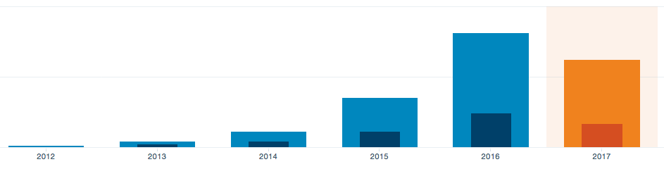 On ollut ilo huomata, että blogini lukijamäärä tuplaantuu vuosittain! Aika huikeeta. En nyt lukuja lähde erikseen availemaan, mutta ylläoleva graafi kertoo sen aika hyvin. Mitäs ihmisiä sitten kiinnostaa lukea? Nähtävästi ainakin toisen epäonnesta ja sitähän meillä on riittänyt vaikka muille jakaa :D Viimeisin vuosi on ollut todella rankka ja siitä on luontevaa blogissakin kertoa, vaikka onkin hieman jännittänyt. Kyllähän sitä itsekin tulee herkemmin luettua muiden postauksia, jos jotain merkittävää ja suurta on tapahtunut, oli se sitten hyvää tai huonoa. Silti se aina yllättää, mitä postausta luetaan paljon tai mitä ei juuri ollenkaan. Sitä ei oikeastaan voi ikinä tietää ennakkoon.