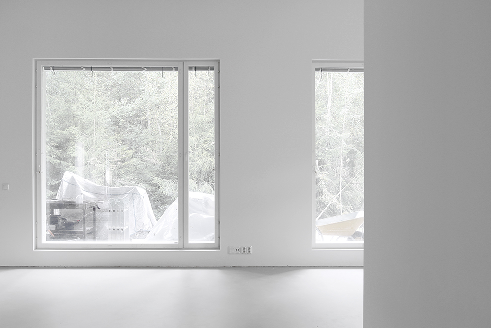 Olimme kyllä käyneet työvaiheet läpi paikan päällä, puhelimessa sekä sähköpostitse, joten kaikesta löytyi onneks mustaa valkoisella. Painotin asiaa monta kertaa, ettei listoja tule, vaan seinien tasoitustyö tehdään ennen betonilattian asennusta, joka oli myös lattiantekijän suositus, jotta jälki on varmasti siisti. Aika surkeaa, että näin silti kävi ja viikon työ meni hukkaan. Noh, eipä asiaa jäädä sen enempää murehtimaan, vaan se korjataan. Lattiamies lupasi käydä laittamassa päälle maalattavaa akryyliä koloihin, eli ihan jokaiseen seinään. Toivottavasti akryylin avulla saadaan reunat siistittyä kuntoon. Seinästä oli irronnut paikoittain myös maalit suojateipin irroittamisen yhteydessä, joten korjaus- ja viimeistelytyötä on enemmäkin tiedossa.