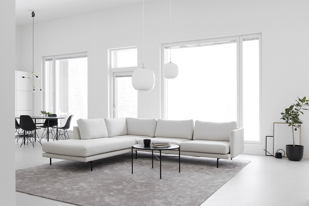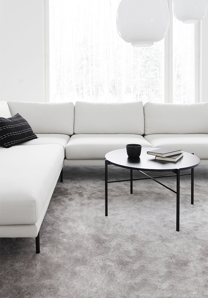 Meillä oli aiemmin olohuoneessa iso juuttimatto, ennen sohvamme saapumista. Mielessäni visioin, että se sopisi hyvin vaalean sohvan kanssa yksiin, mutta kun sohva saapui, huomasin, ettei sohvan sävy natsannutkaan juutin kanssa. Luonnollisen värinen juutti ihastutti ulkonäöllään ja toi lämmön tunnetta tilaan, mutta omaan makuun se oli kuitenkin aivan liian karhea ja roskaava, eikä siihen oikein halunnut paljain jaloin edes astua. Olin tavallaan ihan helpottunut, ettei se ulkonäöllisesti sohvan kanssa toiminut ja siinä samassa vahvistui ajatus siitä, millainen matto olohuoneeseen sopisi ja mikä myös tuntuisi hyvältä. Kiire ei maton hankinnalla kuitenkaan ollut, koska olin jotenkin ihan tykästynyt kotimme riisuttuun ilmeeseen.