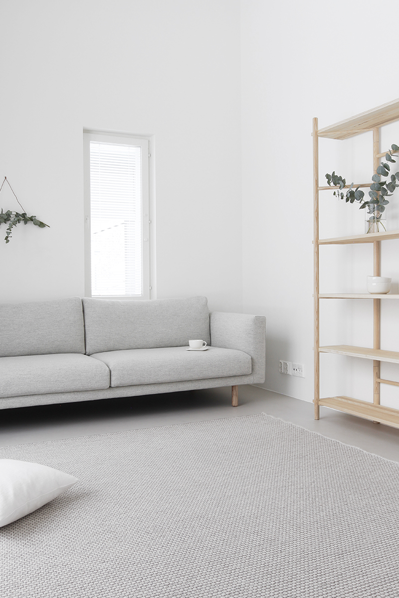 Cosy Pocket Wool -sohvaa on saatavilla kahta eri kokoa, pienempi on leveydeltään 208 cm ja tuo isompi on 234 cm. Pienempi olis ollut super symppis, mutta isompi sopi meille mitoiltaan paremmin. Nyt sohva on ollut testattavana kuukauden ajan ja pian kokeiluun tulee toinen irtopäällinen, joka vaihdetaan villakankaan tilalle ja samalla vaihdetaan myös toiset jalat. Mitään radikaalia muutosta ei ole tiedossa, mutta mielenkiintoista nähdä miten tilan ilme ja fiilis muuttuu, ja kumpi toimii meillä paremmin.