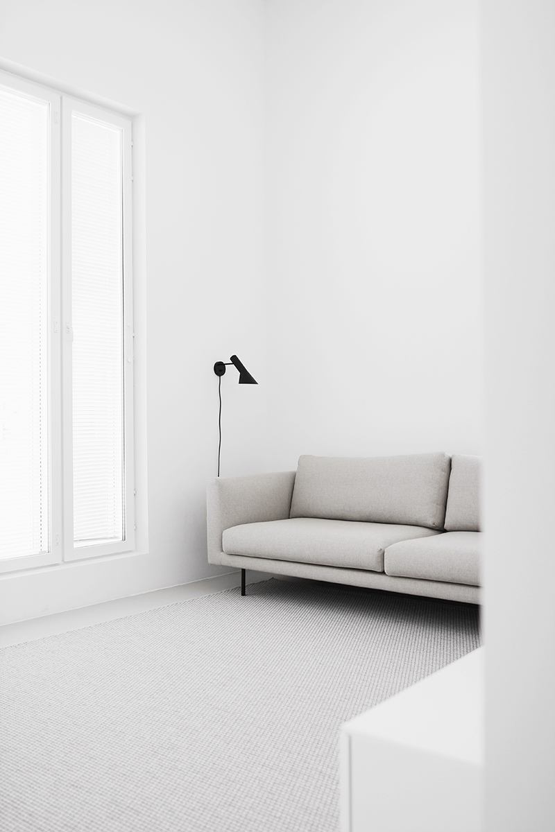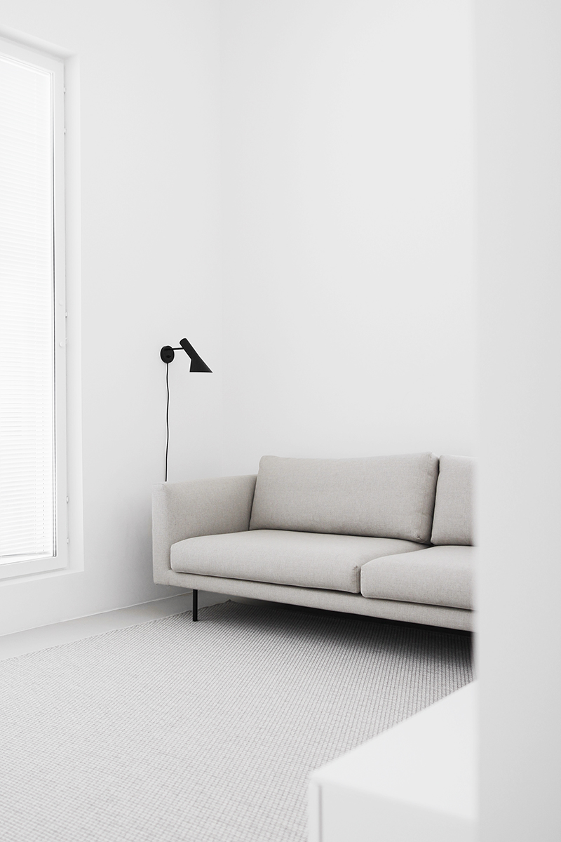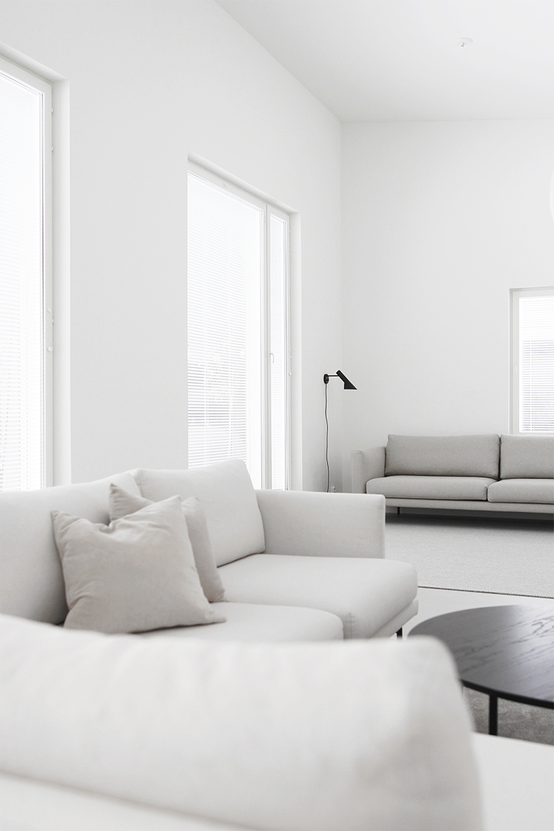 Täytyy sanoa, että odotin tosi paljon, että pääsen kuvaamaan sohvaa uudelleen ja jakamaan kuvat teille. Olisi kiva kuulla, mitä mieltä te olette muuttuneesta ilmeestä! Täällä on sohva nähtävissä aiemmassa kuosissa, eli harmaalla villakankaalla ja puisilla jaloilla. Kumpikos on teidän mielestä parempi kokonaisuus?