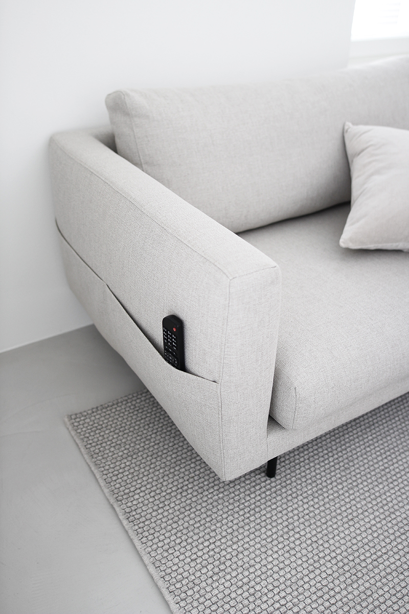 Kuten aiemmin kerroin, telkkarihuoneen Cosy Pocket Wool -sohvaan oli tulossa toiset irtopäälliset sekä toiset jalat. Olin aavistellut, että uusi kokonaisuus olisi mieleisempi, koska värimaailma ja materiaalin tuntu vastaisi enemmän toiveitani. Ajattelin, ettei muutos kovin suuri tule olemaan, mutta yllätyin. Nimittäin se oli! Ei ehkä äkkiseltään ulkopuolisena katsottuna, mutta minun silmissä kyllä.