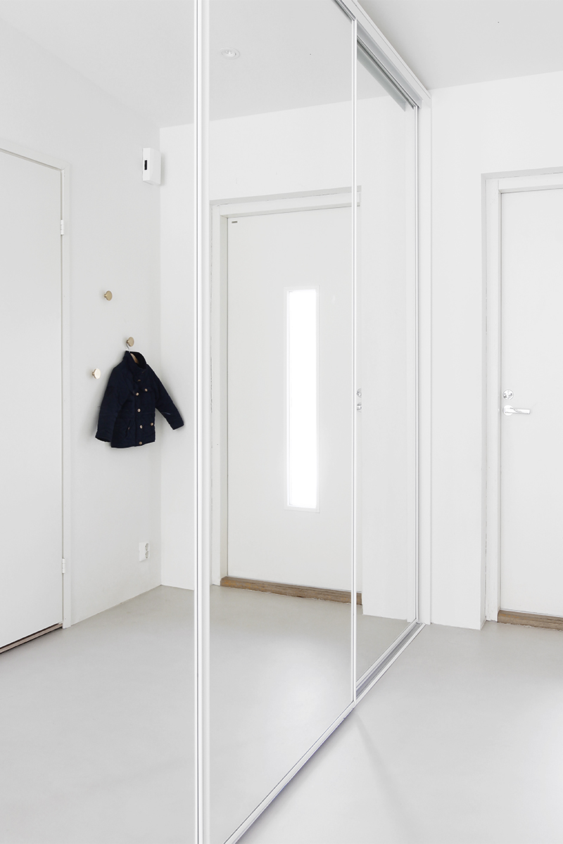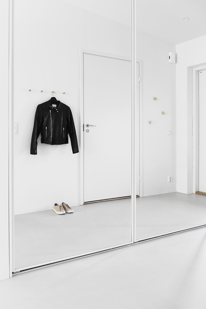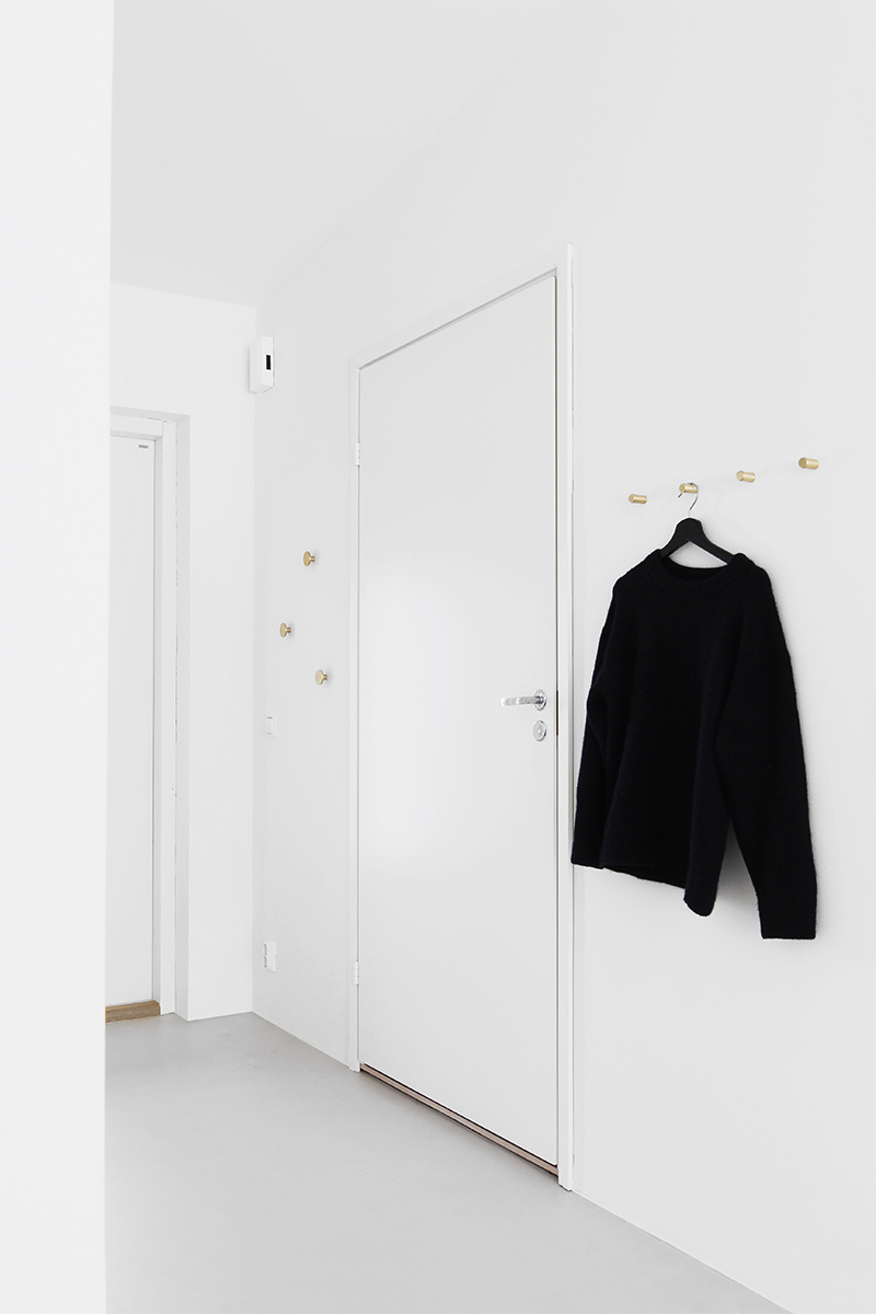 Tilasin useamman naulakon ja moni niistä jopa asennettiin paikoilleen, mutta samantien tuli sellainen olo, ettei sovi yhtään. Kokeilussa on ollut mm. Menun Afteroom naulakot, jotka olivat aivan liian kookkaat ja hallitsevat. Seuraavaksi tilasin mustat Menun Knobs seinäkoukut, joita ei ikinä seinään edes laitettu, kun nekin tuntui olevan liian möhkäleet. Sitten ostin Bauhausista kromisia nuppinaulakoita, jotka puolestaan olivat liian keveitä ilmeeltään.