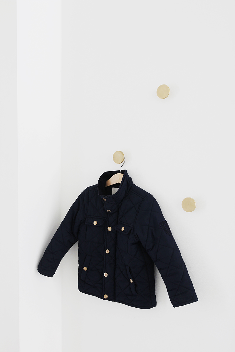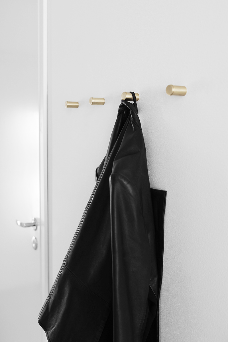 Koska messinkiä meillä on muutenkin sisustuksessa, arvelin että se voisi materiaalin ja värin puolesta sopia. Olen ihaillut Ferm Livingin messinkisiä Hook-ripustimia, jotka jostain syystä jäivät aiemmin vähän taka-alalle. Aikani kun niitä ihmettelin, päätin tilata ja kokeilla – ja toivoa, että nyt natsaa.