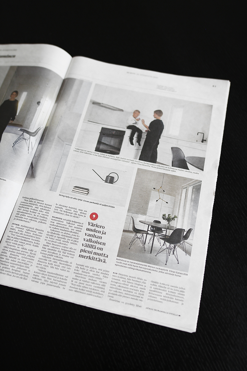 Osa on ehkä huomannut, että Hesarissa oli juttua kodistamme. Jutun aihe käsitteli pääosin valkoista sisustusta ja minimalismia, mutta sivuttiin myös hometalohistoriaamme.