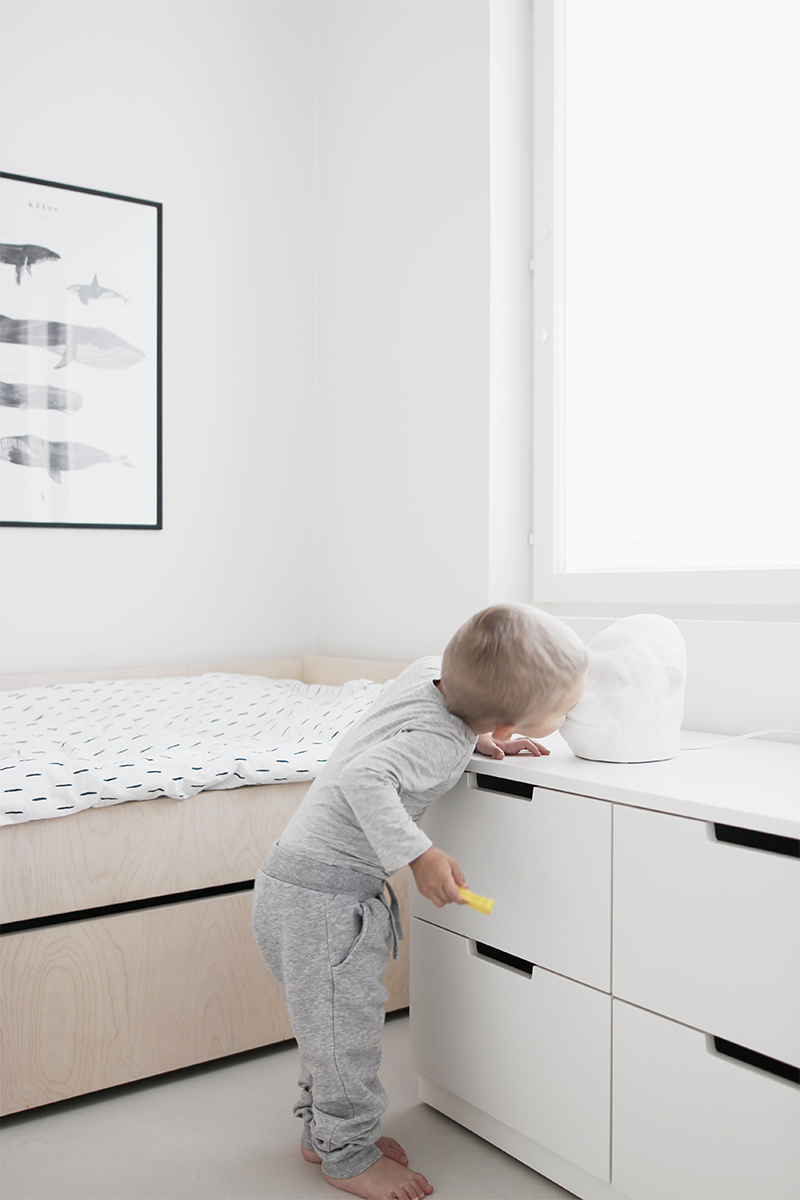 Jos otan kuvia blogiin, järjestelen ja siivoan aina ensin kuvattavan alueen. Sitten teen pientä stailausta ja lopuksi vielä käsittelen kuvat. Tämä saattaa viedä useamman tunnin, että saan luotua yhden onnistuneen valokuvan. Ei siis kannata ajatella, että meillä olisi aina sen näköistä, miltä kuvissa näyttää. Hyvin harvoin meillä on kaikki paikat tip top, onkohan koskaan. Leluja pyörii siellä täällä, myös likaa, tahraa ja muuta sotkua riittää. Taaperon ansiosta kaupantekijöiksi vielä reikiä seinissä, ovessa sekä lattiassa.