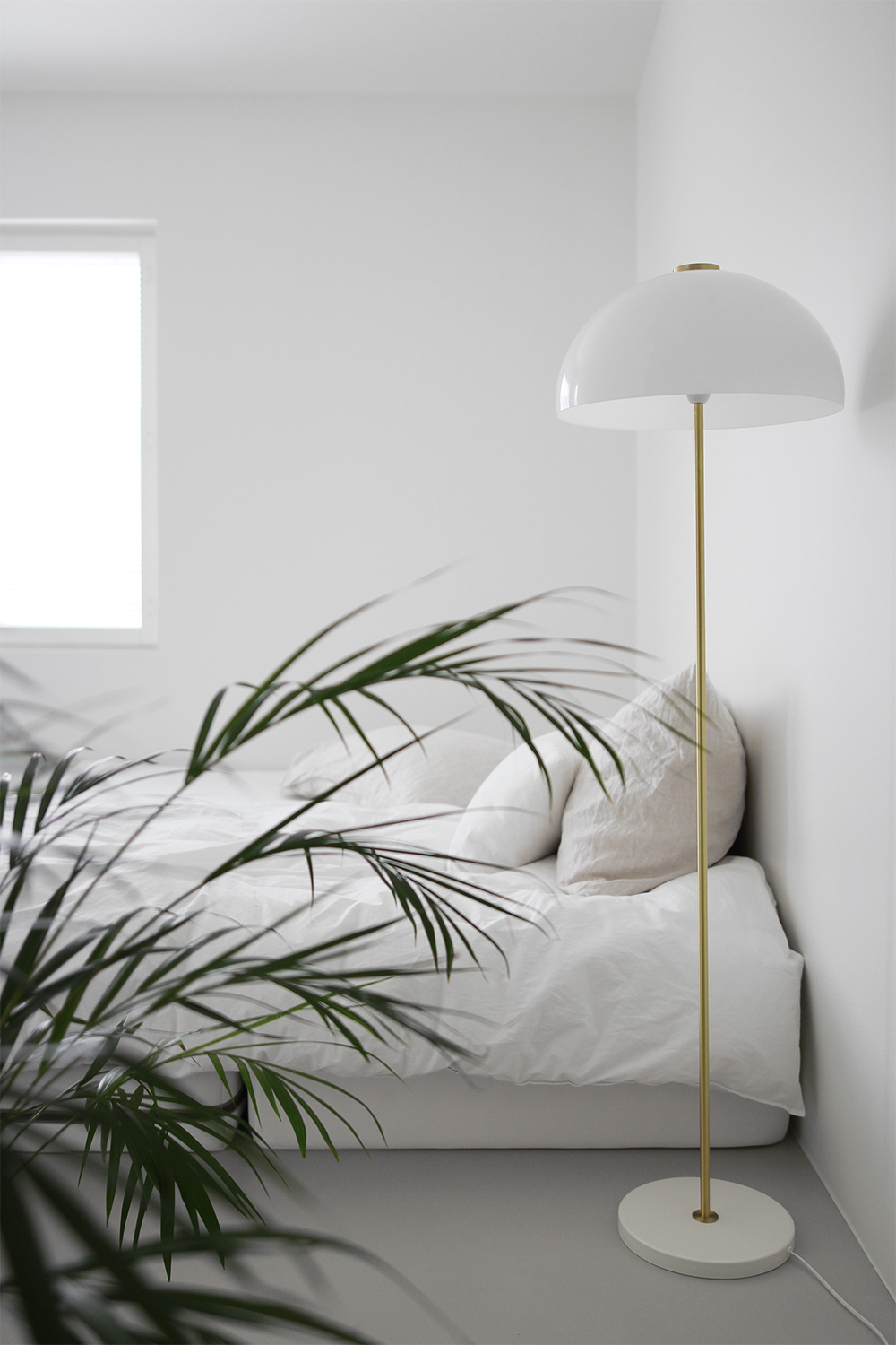 Olen pitkään etsinyt makuuhuoneeseen sopivaa lukuvaloa. Toiveissa on ollut vaalea ja kevyt lattiavalaisin, jonka paikkaa voi vaihdella tarpeen mukaan. Ajatuksena oli hiekanvärinen valaisin, joka osottautui täysin mahdottomaksi löytää. Luovuin väritoiveesta ja sitten aloin katselemaan valkoisia vaihtoehtoja. Löysin viehättävän uutuuden Menulta, joka ei kuitenkaan vastannut laadullisesti yhtään odotuksia. Olen tottunut Menun hyvään laatuun, joten tuntui hieman oudolta, kun valaisin vaikutti enemmän protomallilta, kun viimeistellyltä designvalaisimelta.