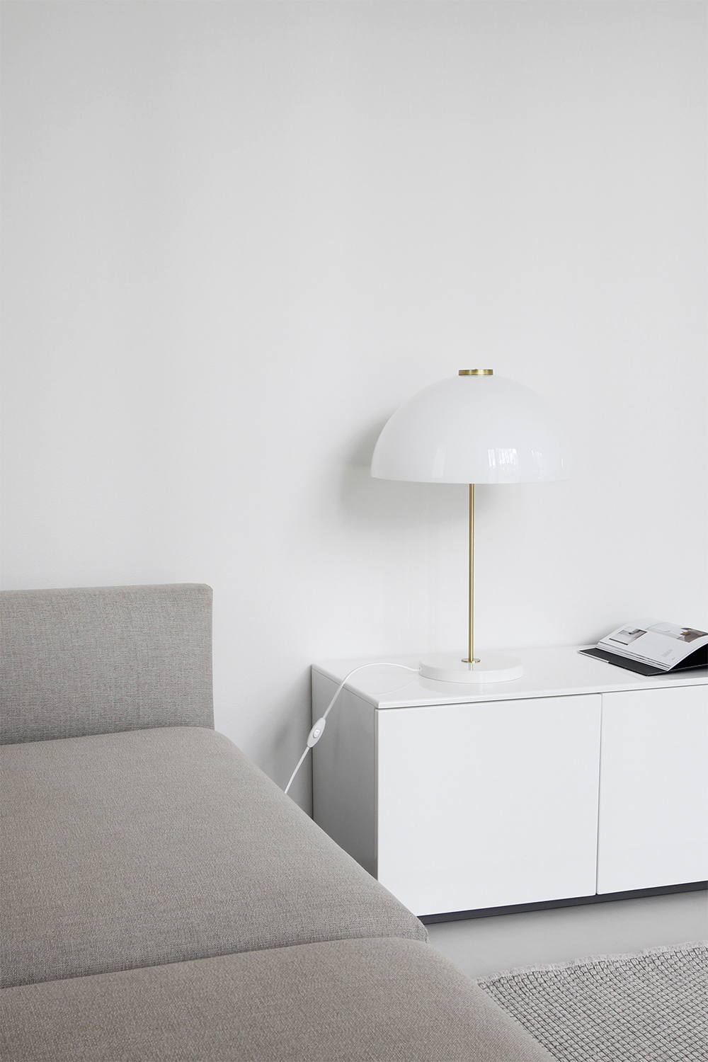Selvisi, että kyseessä on suomalaisen Innoluxin Kupoli-valaisin, jonka on suunnitellut Yki Nummi vuonna 1960. Kyseisen vuosikymmenen muotoilu on aina puhuttanut itseäni, se on yksinkertaisen ajatonta ja funktionaalista, eikä siihen kyllästy. Tuolta vuosikymmeneltä tuntuu tulevan ne kuumimmat klassikot, joihin tämäkin valaisin lukeutuu.