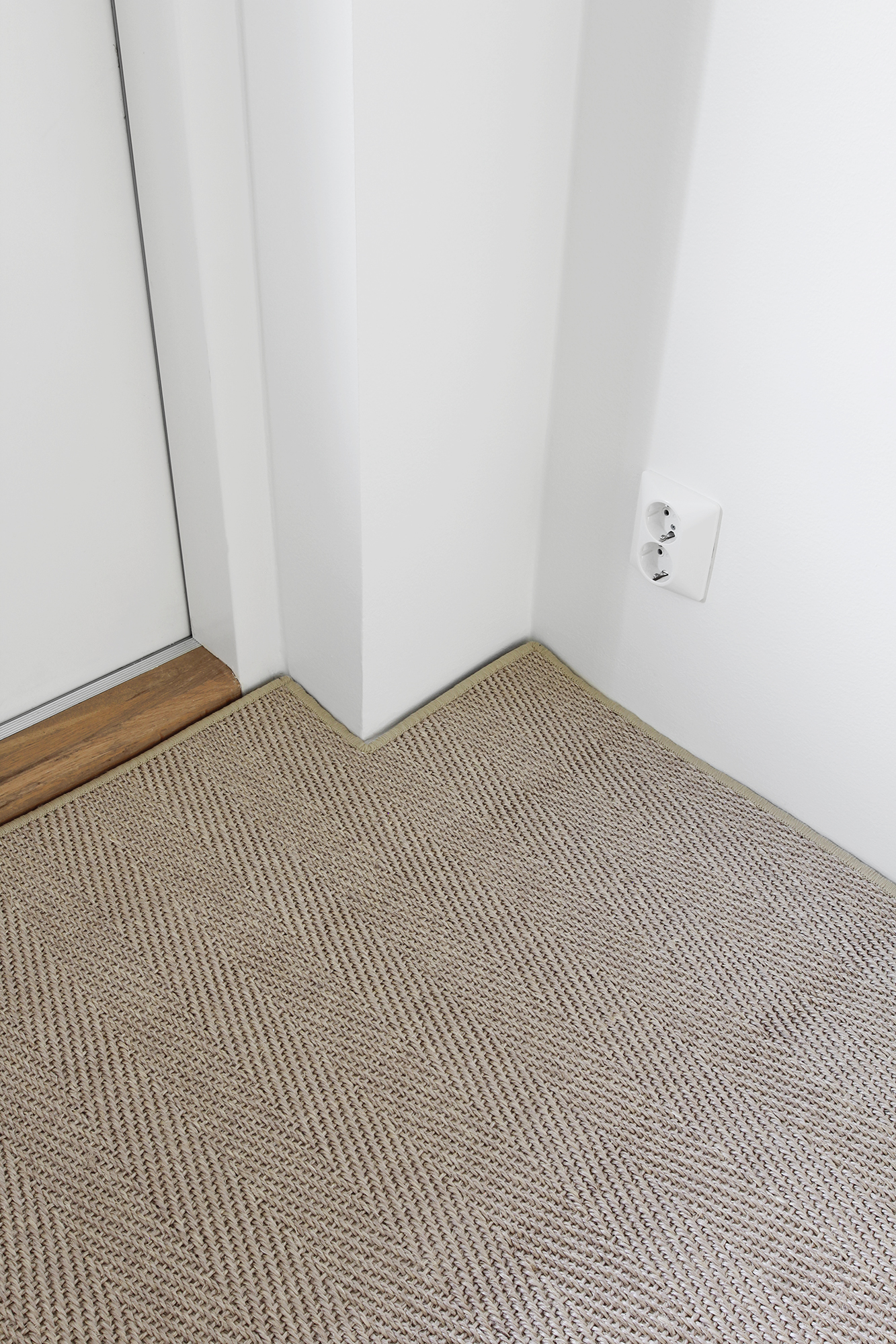 Matto.fi tarjoaa laajan valikoiman erilaisia mattoja kodin eri tiloihin, myös mittatilauksena. Sain heiltä viime keväänä yhteistyöehdotuksen ja innostuin valtavasti, koska olin jo pitkään kaavaillut mittojen mukaan valmistettua mattoa eteiseen. Toivomuksena oli luonnollinen sisalmatto, joka istuisi vaalean harmaan betonilattian kanssa yksiin. Tilasin useamman mallipalan erilaista sisalmatoista, joista valikoitui kaunis beigen värinen Sisal Habanna, 9344.