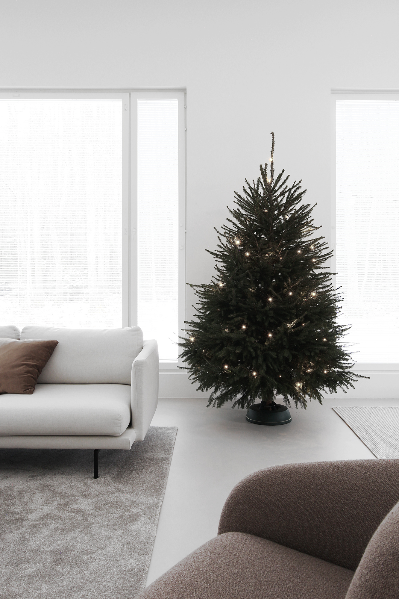 Hain ihka ensimmäistä kertaa joulukuusen itse! Tämä yksilö osui silmiini, kun olin jouluostoksilla ja seuraavana päivänä kävin hakemassa sen. Juuri tuollaisen toivoinkin löytäväni. Laitoin kuuseen valot ja koska se näytti niin nätiltä sellaiseen, jäi muut koristeet laittamatta. Taisi olla viime vuonna sama homma, ettei se valoja enempää kaivannut. Muutenkin tänä vuonna koristelut jäivät minimiin. Havut ja hyasintit maljakossa, sekä eskarilaisen tekemät jouluaskartelut seinillä. Siinäpä ne, riittivät oikein hyvin.