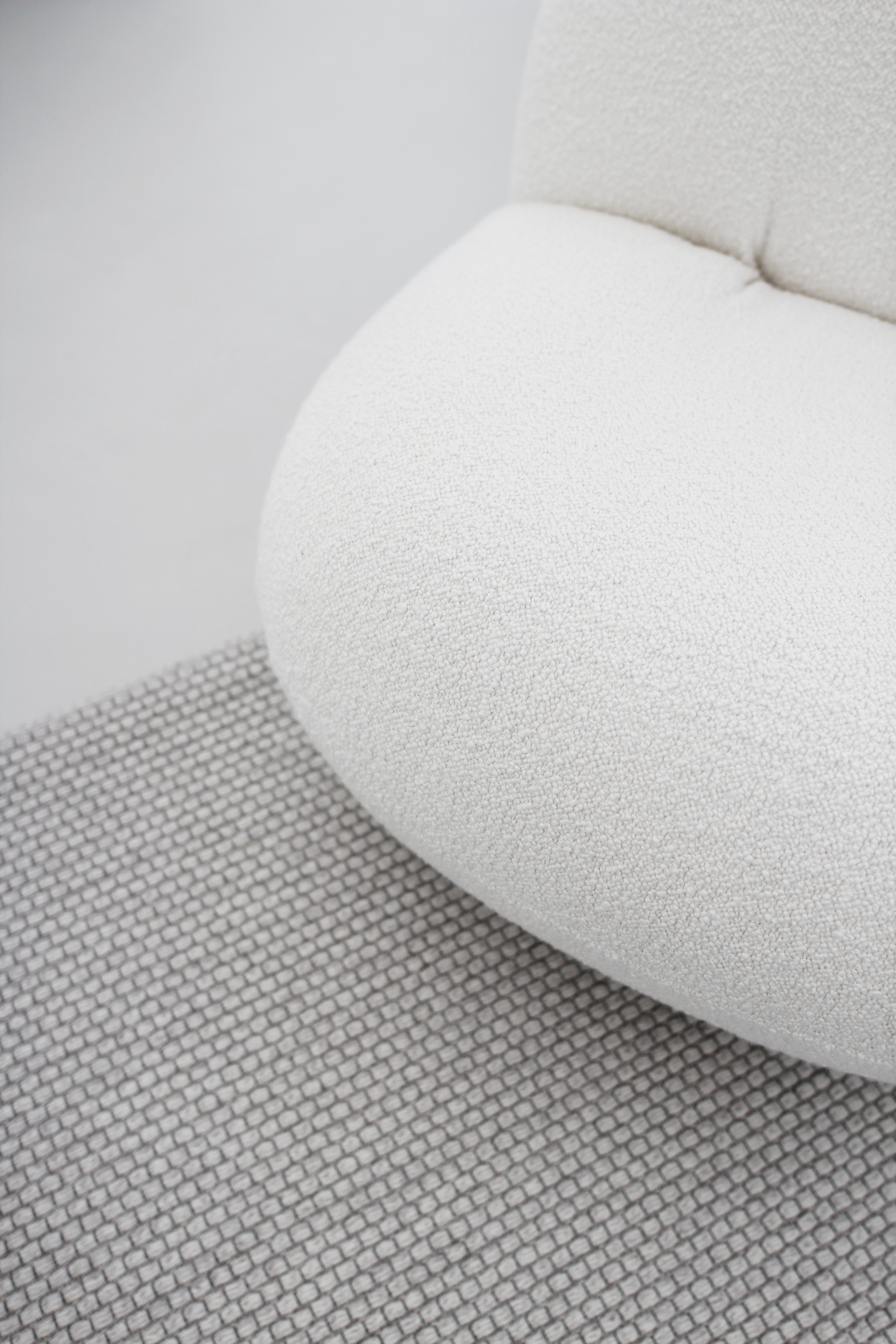 Pachaa löytyy muuten myös pyörivä versiona, mutta itse halusin sen kiinteänä. Täällä olisi muuten ollut jatkuva karuselli menossa poikien toimesta. Kankaissa on muutama erilainen vaihtoehto saatavana, parissa eri värissä ja materiaalissa. Otin tuoliin Karakorum-villakankaan, joka antaa muhkulle tuolille tosi paljon luonnetta. Kangas on bukleemainen, tuommonen eläväisen nyppyläinen.