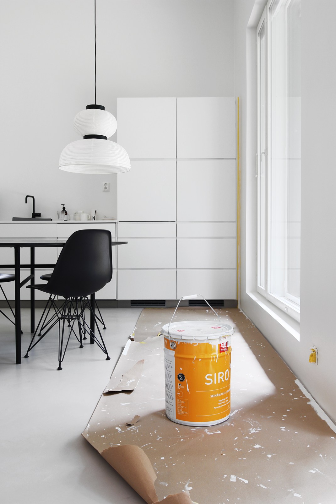 Sisätilojen uudelleen maalaus ei sinänsä nosta kodin arvoa, teen tämän oikeastaan vain oman mielenrauhan takia. Hommahan alkoi jo kaksi vuotta sitten ja nyt alkaa sekin projekti olla valmiina. Olen tosi tyytyväinen, että maalasin seinät uudelleen. Tilat näyttävät taas paljon avarammilta ja pehmeämmiltä uuden maalin myötä. Tikkurilan valkoisen tilalle tuli siis Paperi, joka sopii vaalean betonilattian kanssa paremmin yksiin.