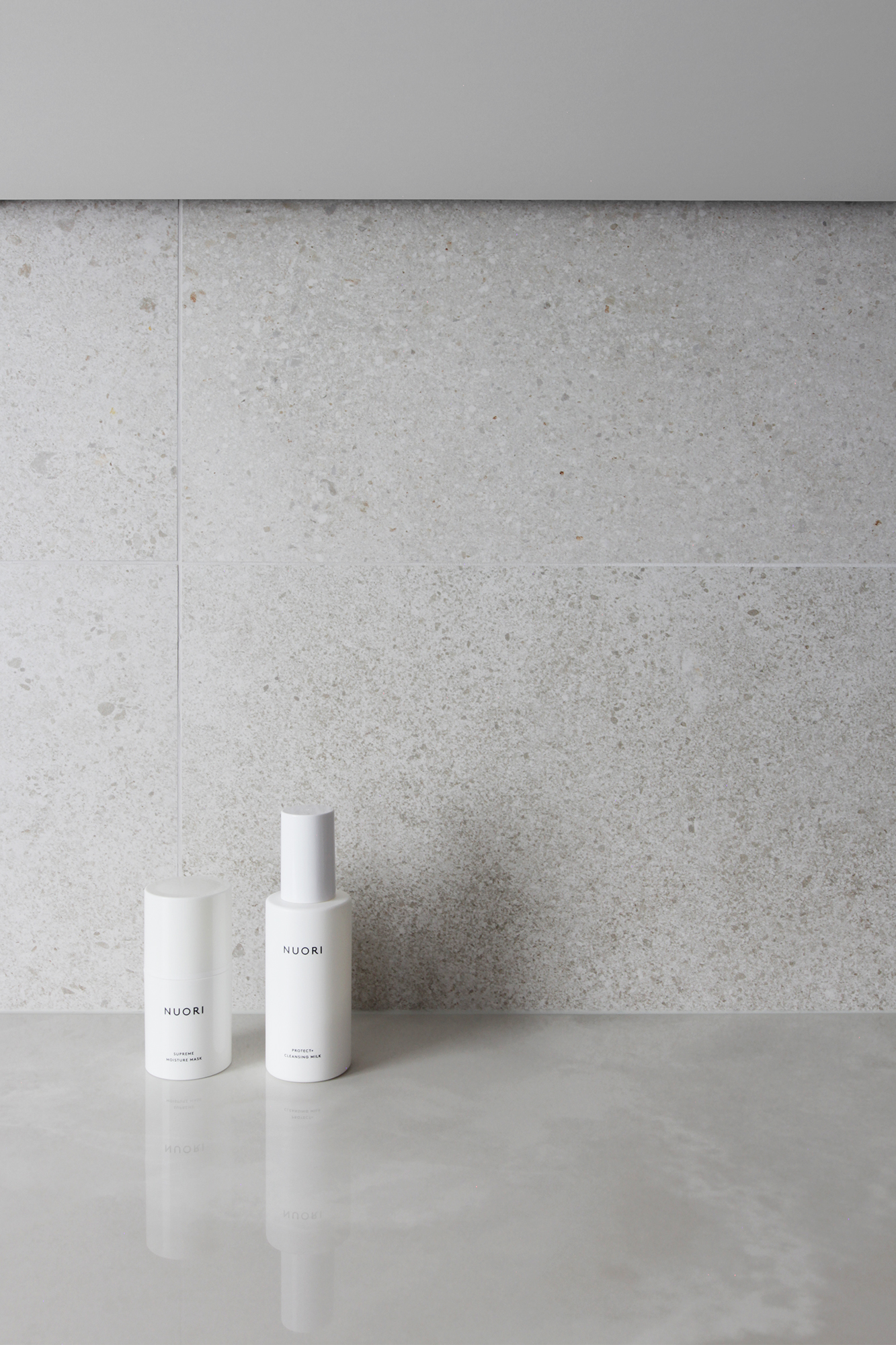 Löysin kuin löysinkin mieleistä laattaa Pukkilan laajasta valikoimasta. Pukkilan kauniissa Deep-sarjan laatoissa on ihana terrazzomainen kuviointi ja värivalikoimaan kuuluu Sugar, Powder, Ash ja Pepper.