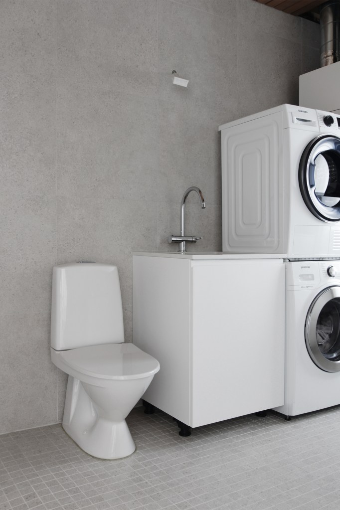 Aluksi ajattelin luopua kuivausrummusta, jotta saisin enemmän avaruutta ja laskutilaa. Noh, lapsia taloudessa ja kokemuksesta tiesin kuivausrummun tuovan helpotusta arkeen, joten hyväksyin pesutornikompleksin uuteen kylppäriini.