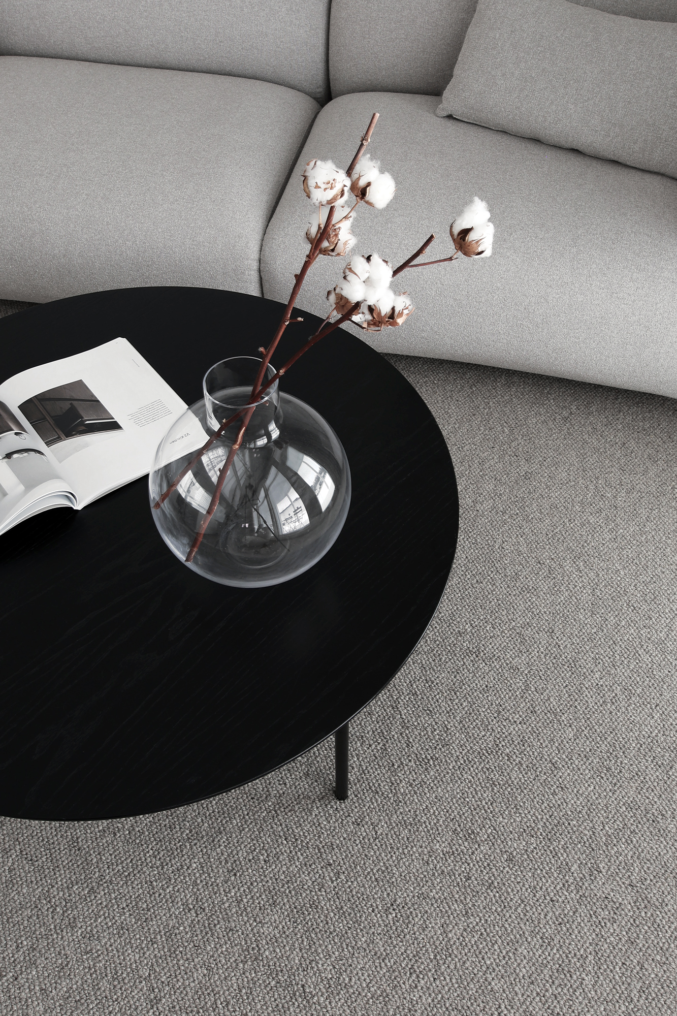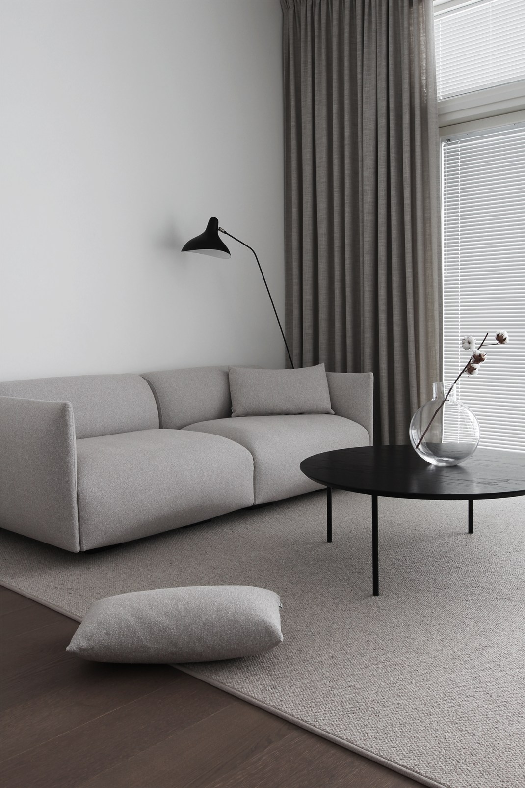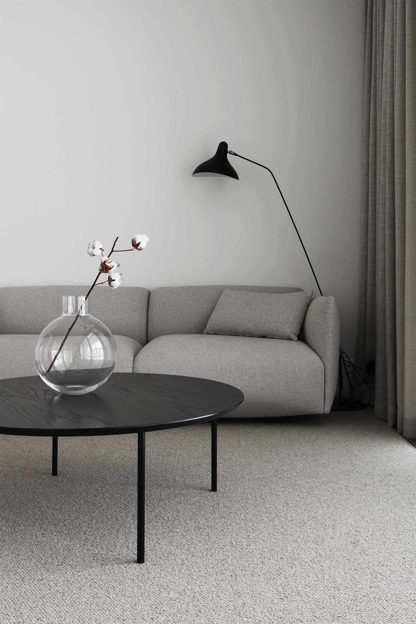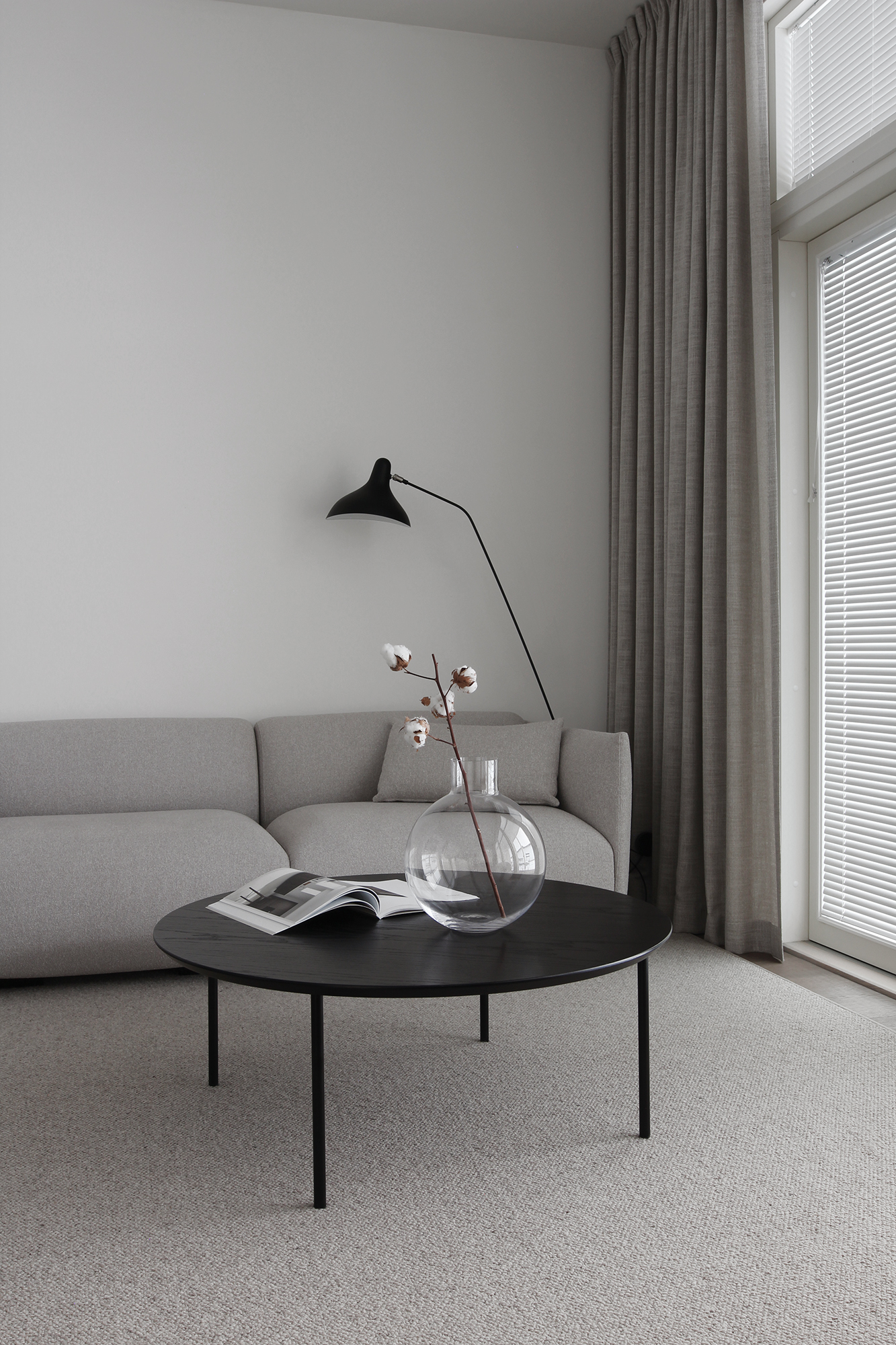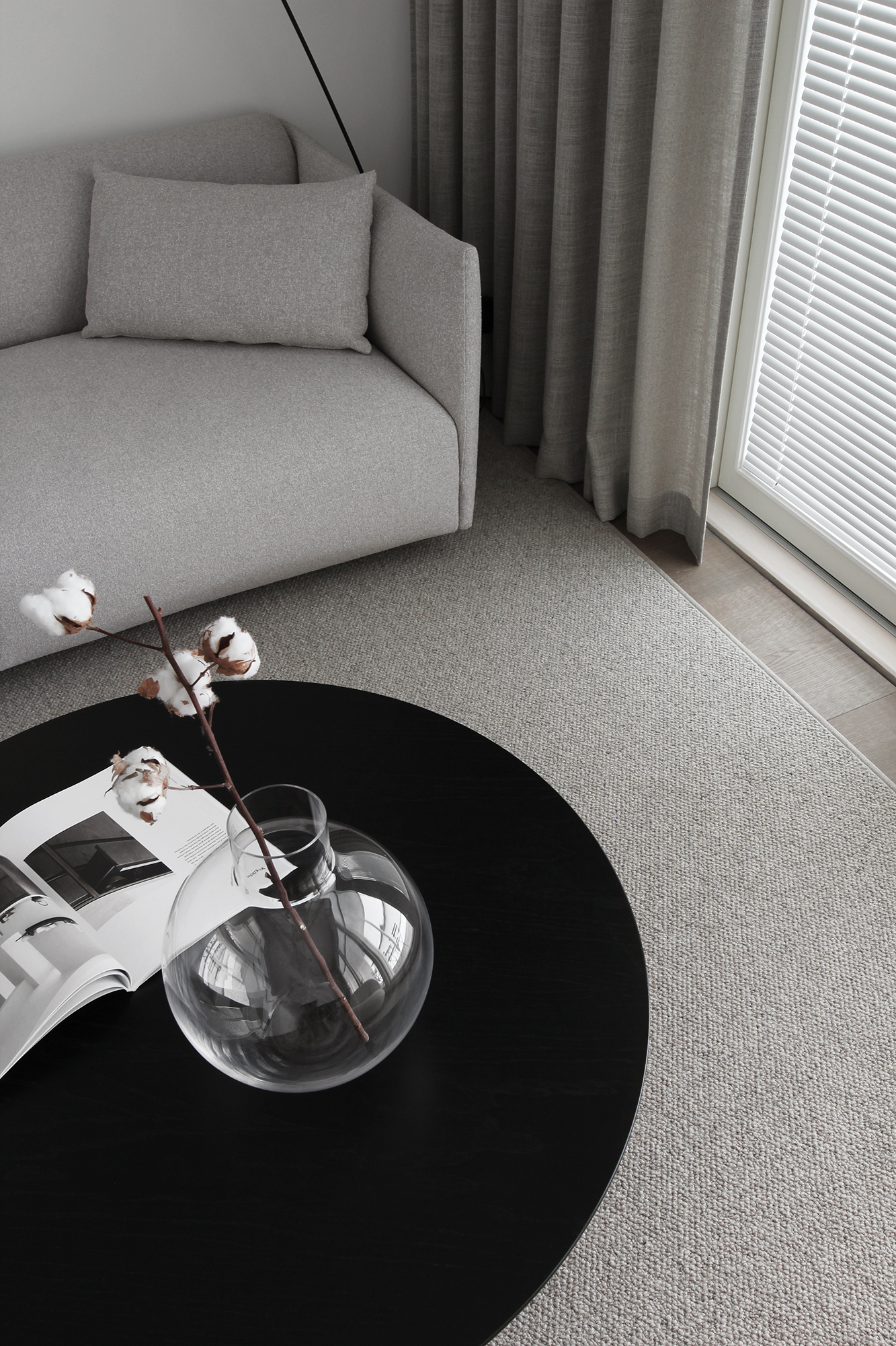 Olohuone on kaivannut isompaa mattoa jo pidemmän aikaa, mutten ole pitänyt hankinnan kanssa mitään kiirettä. Olin tykästynyt väliaikaiseen mattoon, joten toivoin uuden maton olevan samantyyppinen – hillityn neutraali, hiekanvärinen ja helppohoitoinen.