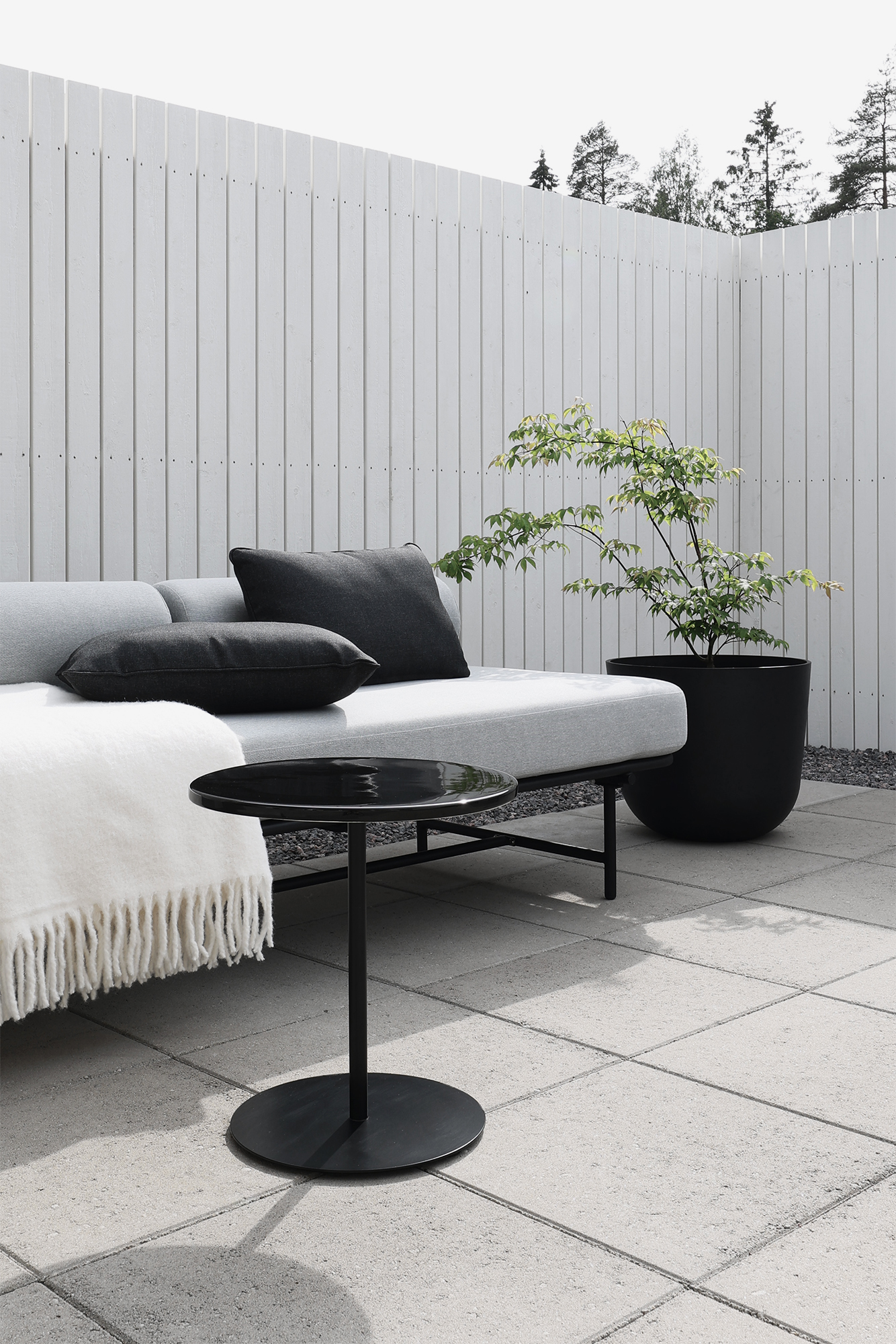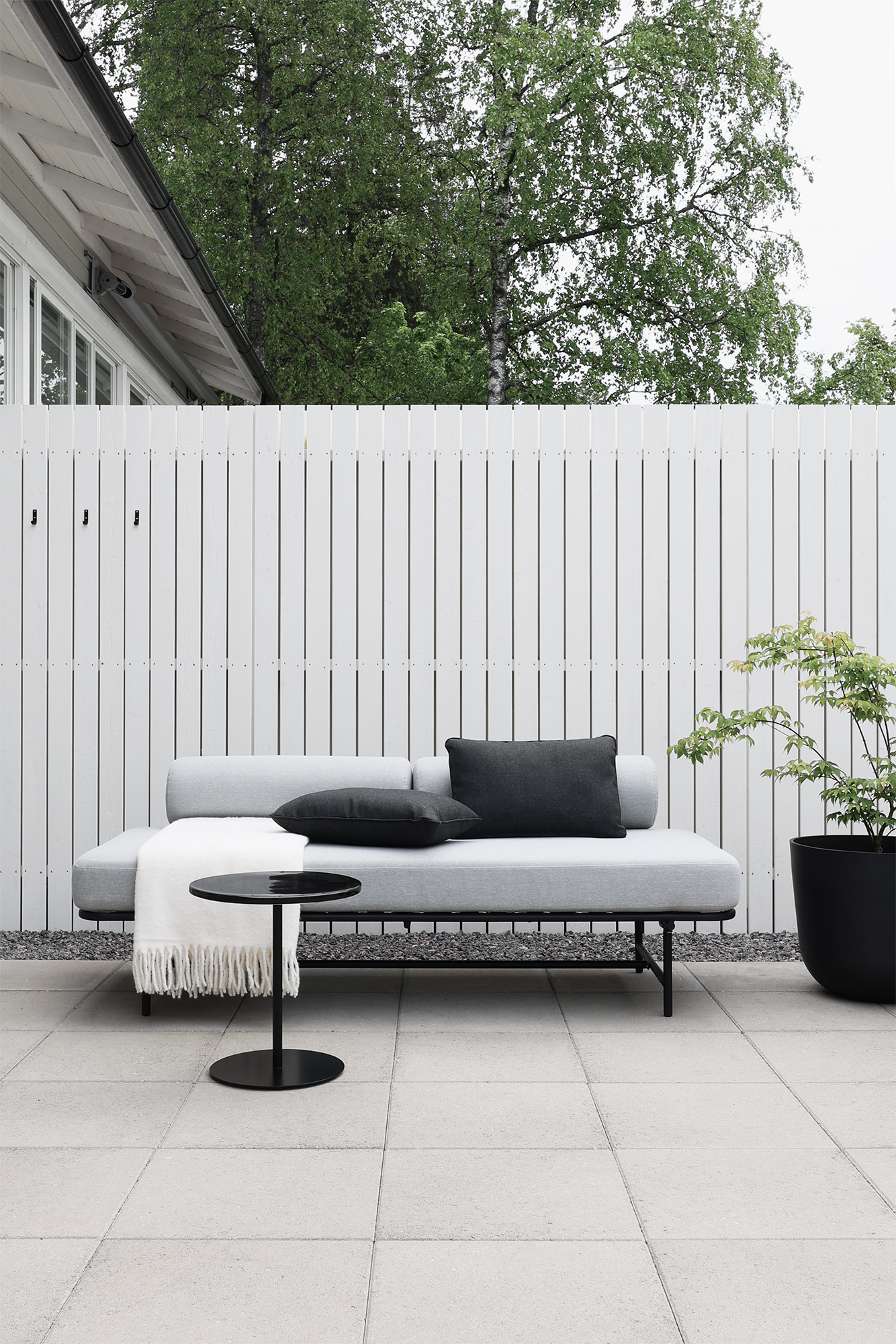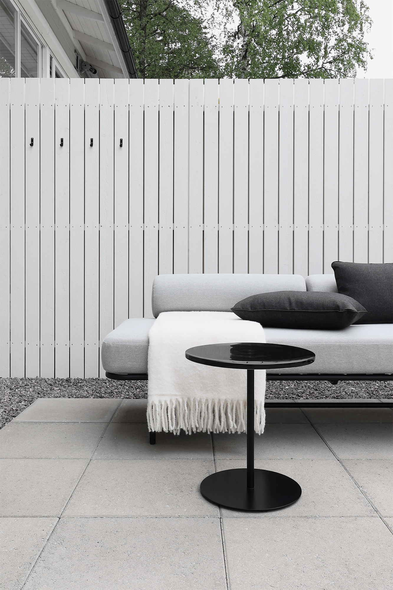 Halusin daybedin yhteyteen pienen pyöreän pöydän, jonka päälle voi laskea juomat, puhelimen tai mitä nyt milloinkin. Yksinkertainen HAYn Pyro-sohvapöytä vastasi toiveisiini.