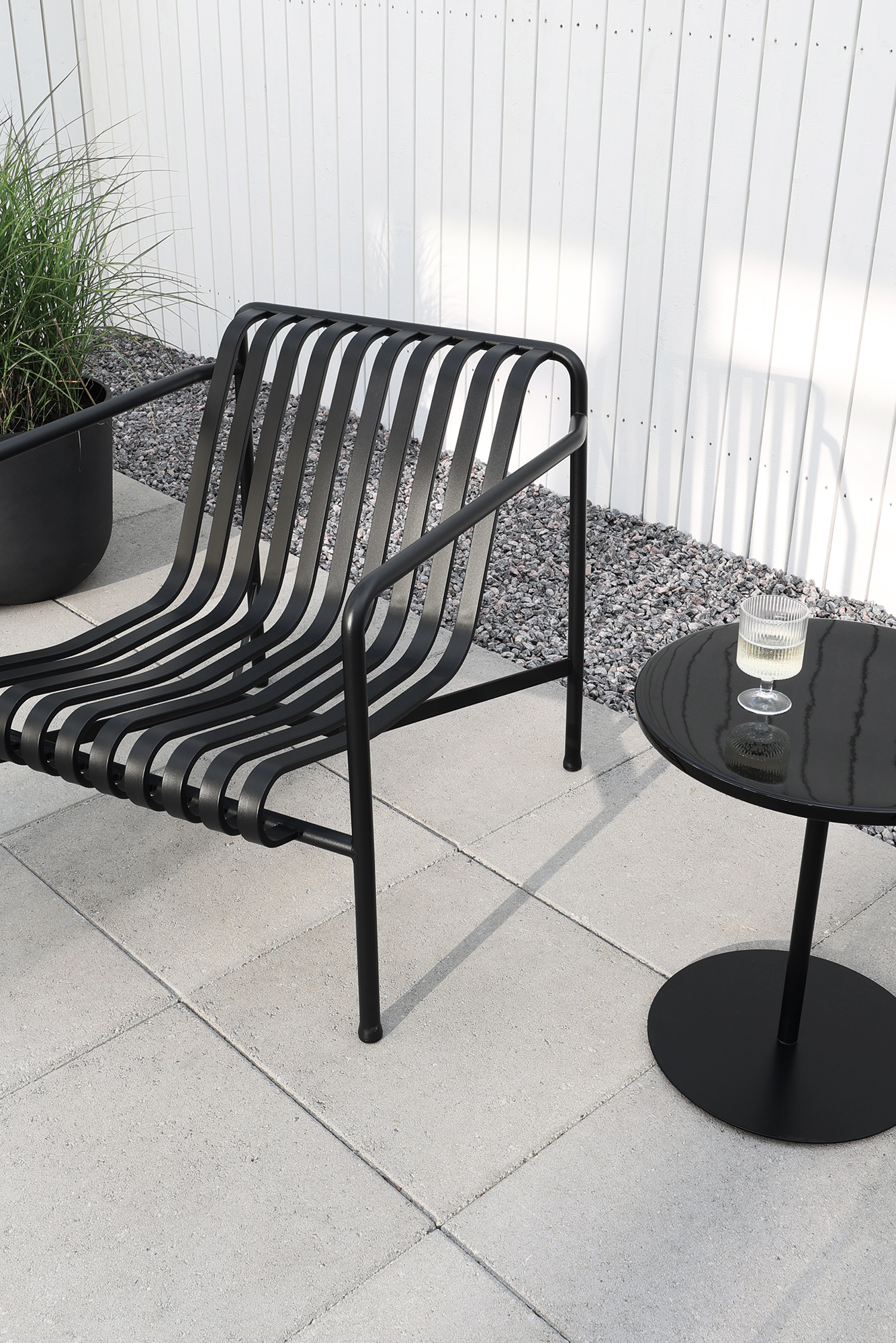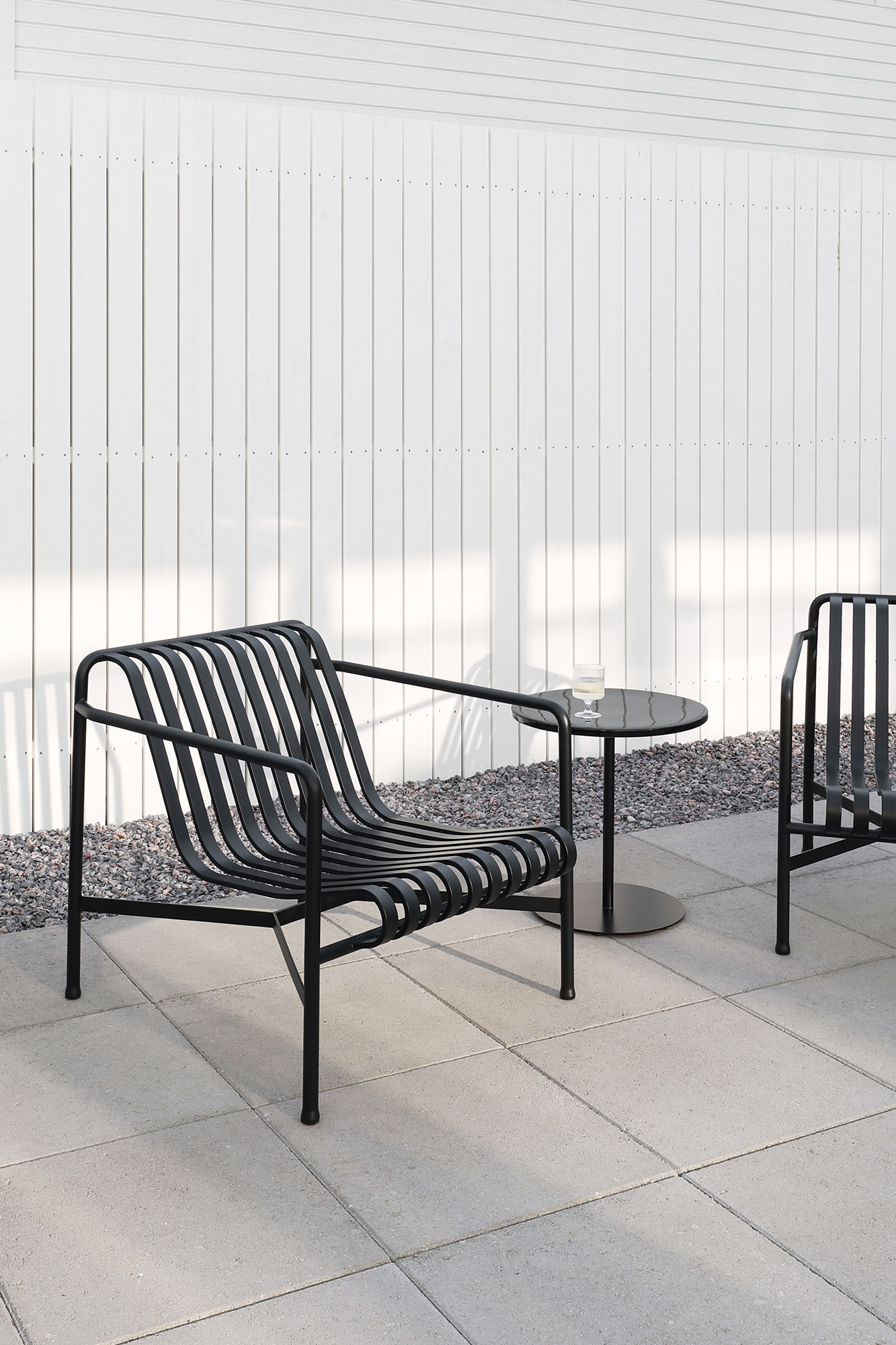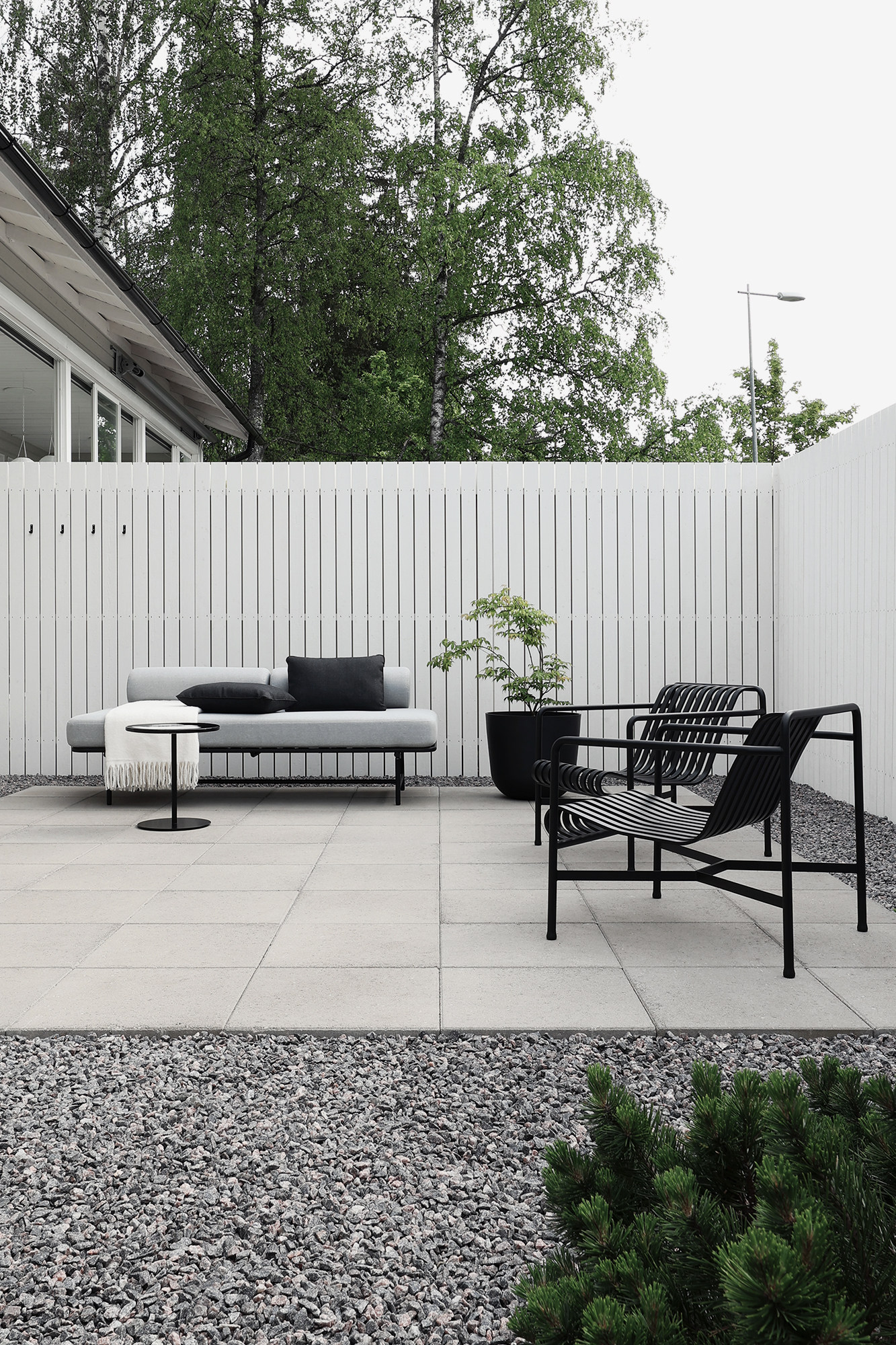 Matalan selkänojan Palissade-nojatuolit lähti tilaukseen antrasiitin värisinä kaksin kappalein. Palissadet on jauhemaalattuja, joten ne on erittäin kestäviä, eikä ole huolta muuttuvista sääolosuhteista. Rentoa istuskelua siis tiedossa, check!
