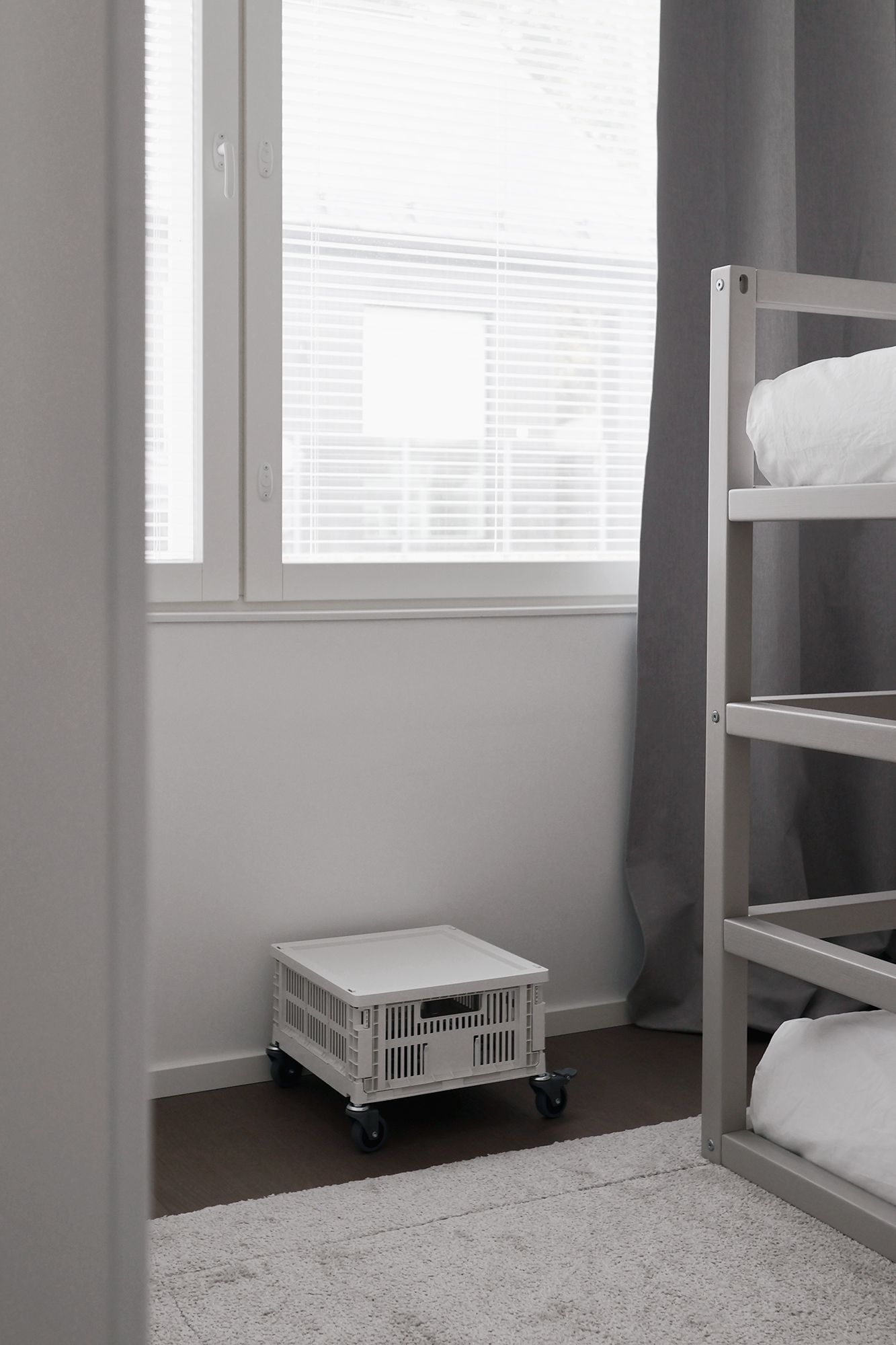 Vanhempi lapsi toivoi kännykälle pientä tasoa tai pöytää. Heti tuli mieleen, että HAY:n Colour Crate säilytysboksi pyörillä voisi olla tähän tarkoitukseen loistava. Sitä voi helposti siirrellä, se toimii loistavasti johtojen ja muun pientavaran säilytykseen, ja sitä voi myös muokata lisäämällä bokseja päällekkäin. Lapsi tykkäsi tosi paljon ideasta ja huomenna hän sitten näkee millainen saapui. Minusta tuo on aivan super söpö ja sopii lastenhuoneeseen todella hyvin.