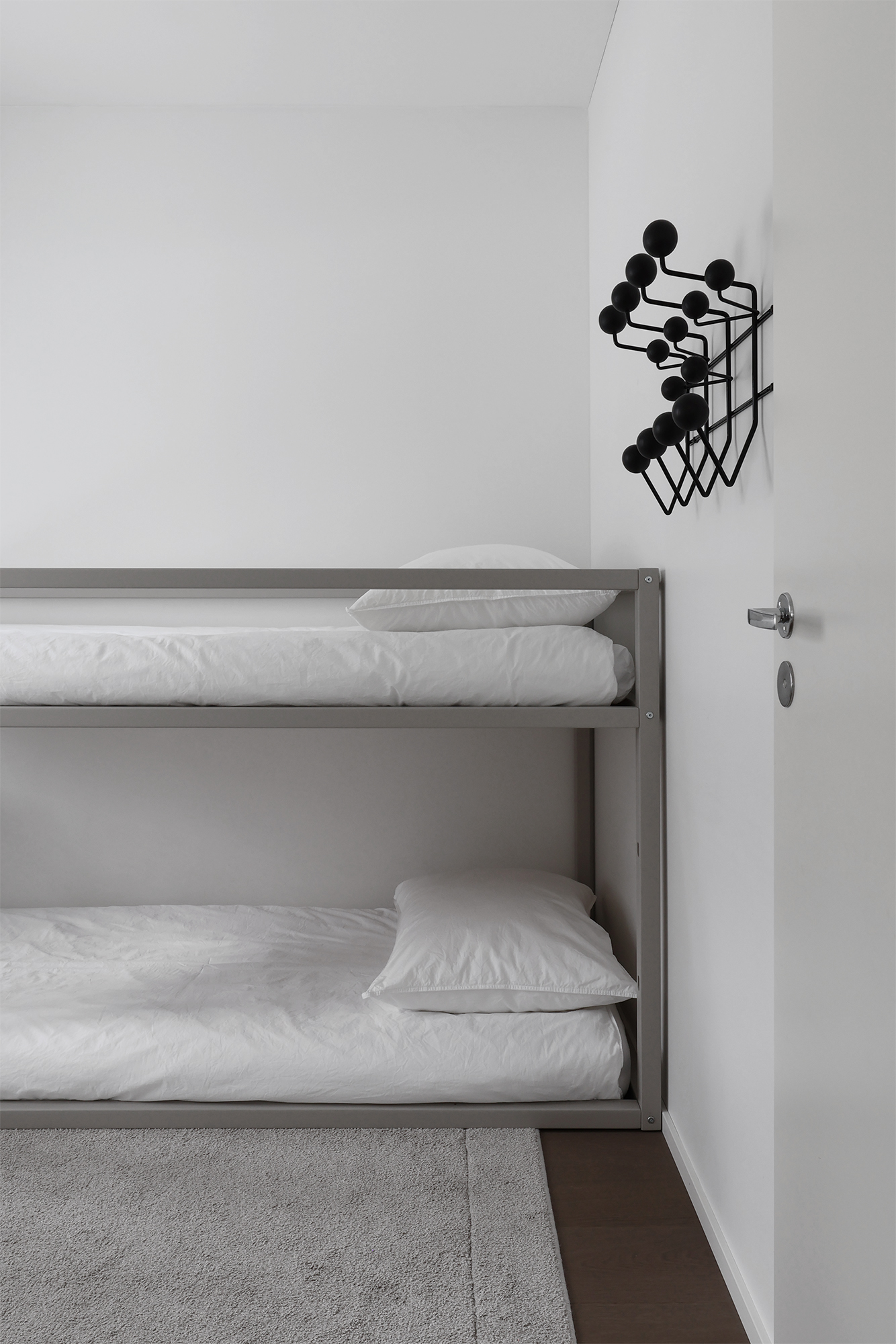 Jos olisin tiennyt miten aikaa vievä tämä projekti lopulta on, en todennäköisesti olisi siihen koskaan lähtenyt. Helpointa olisi ollut tilata koko sänky puusepäntyönä, mutta toistaiseksi semmoiseen ei budjettini veny. Toisekseen, itseäni miellyttävää valmista kerrossänkyä ei löytynyt lukuisten etsintöjen jälkeen, joten päädyin tuunaamaan olemassa olevan Ikean Kura-sängyn, joka yksinkertaisuudellaan viehättää. Olen jättänyt sängystä kokonaan taustalevyt pois, jotta se on mahdollisimman ilmava ja osan puista käänsin ylösalaisin, jottei levyille tarkoitetut urat näkyisi.