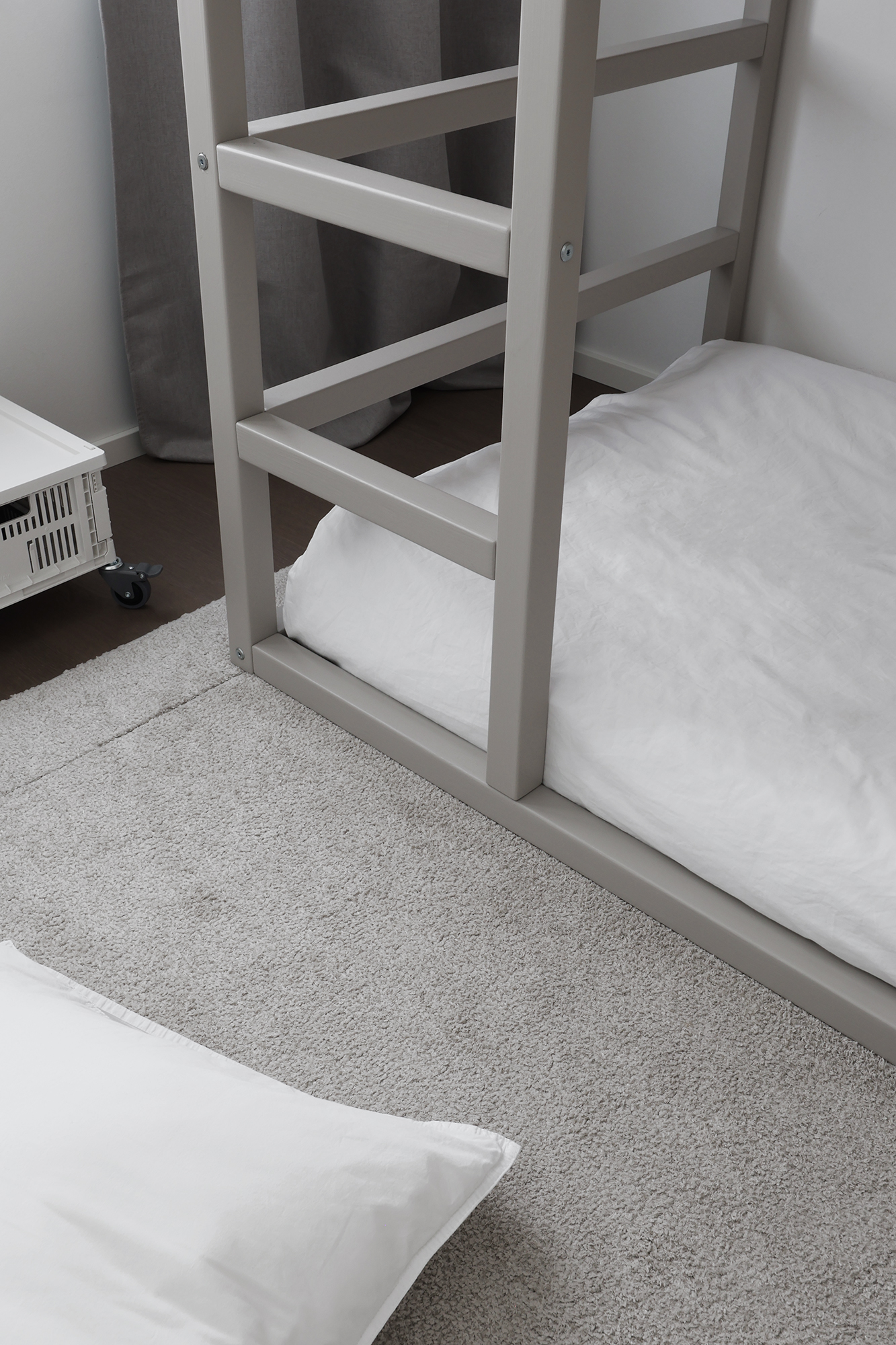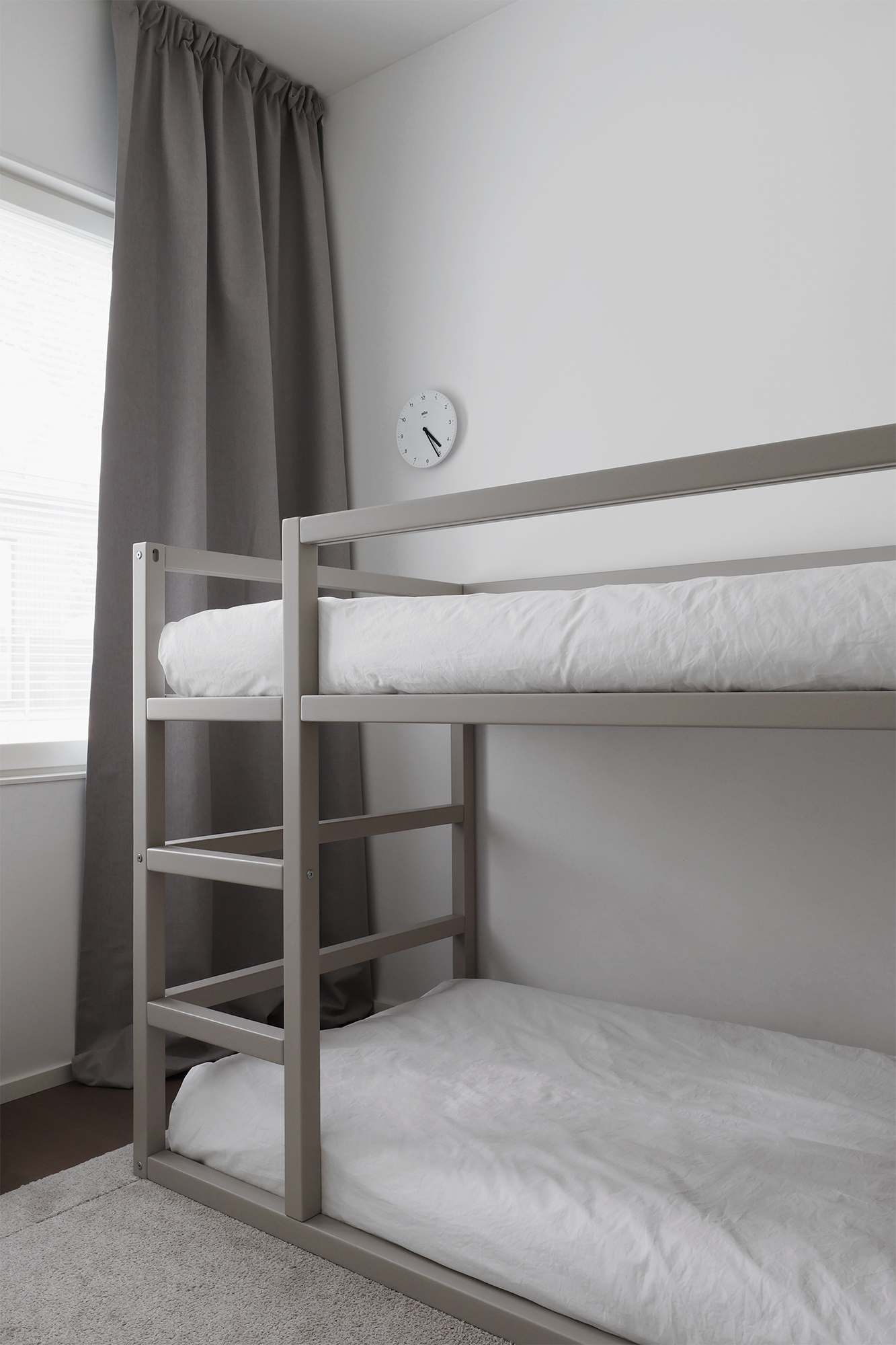 Lapset kyselivät jatkuvasti milloin oikein rakennan heille kerrossängyn. Nuorempi lapsi on nukkunut minun vieressä tähän asti, joten kovasti oli jo hinkua päästä omaan huoneeseen nukkumaan.