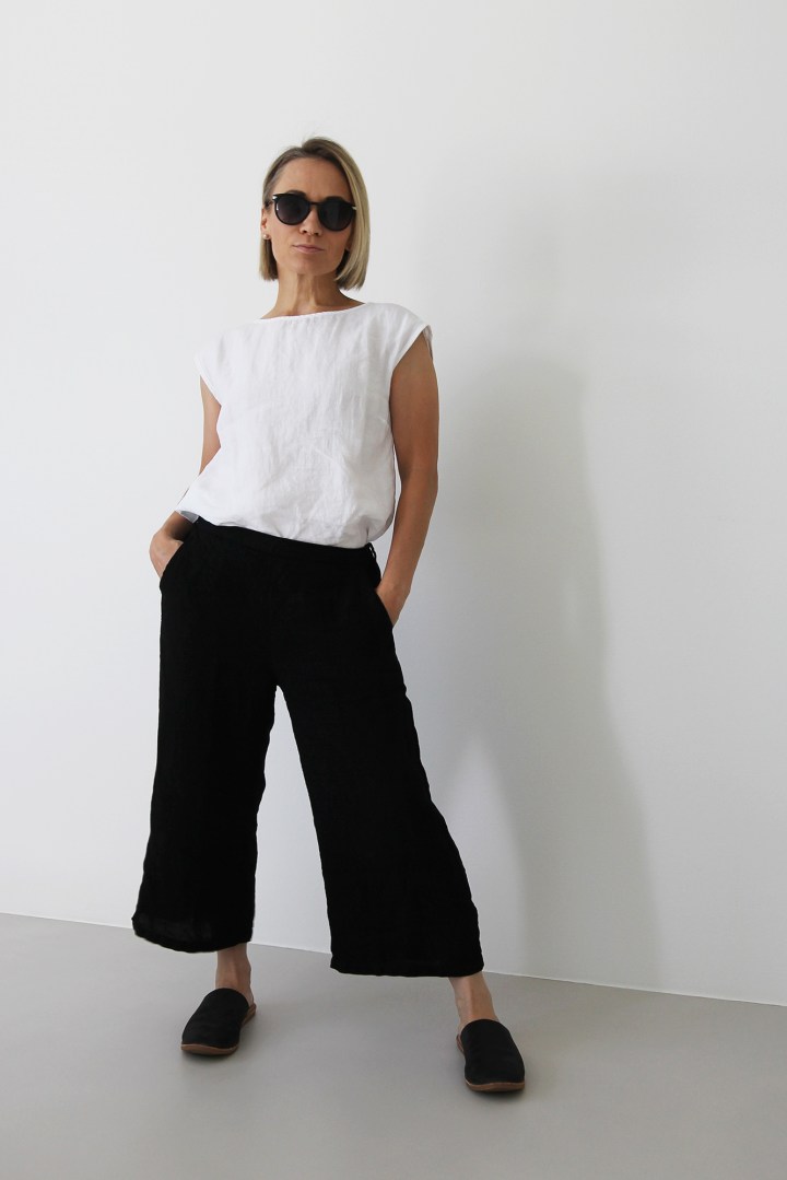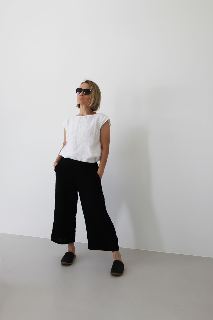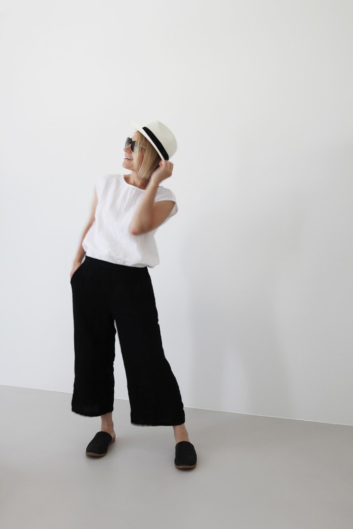 Kokosin omaan tyylini sopivan kesäisen asun Balmuirin valikoimista, johon kuuluu Lucy-pellavatoppi sekä leveät lyhytlahkeiset Lora-pellava-culottehousut. Vaikka itse olen lyhyt (siis kokonaiset 158 cm), nämä housut ovat itselleni ihan täydellisen mittaiset! Usein lyhyeksi tarkoitetut housut näyttävät minun päälläni normaalipituisilta ja lyhyiden mallien idea häviää, mutta näissä pituus on juuri toivotunlainen.