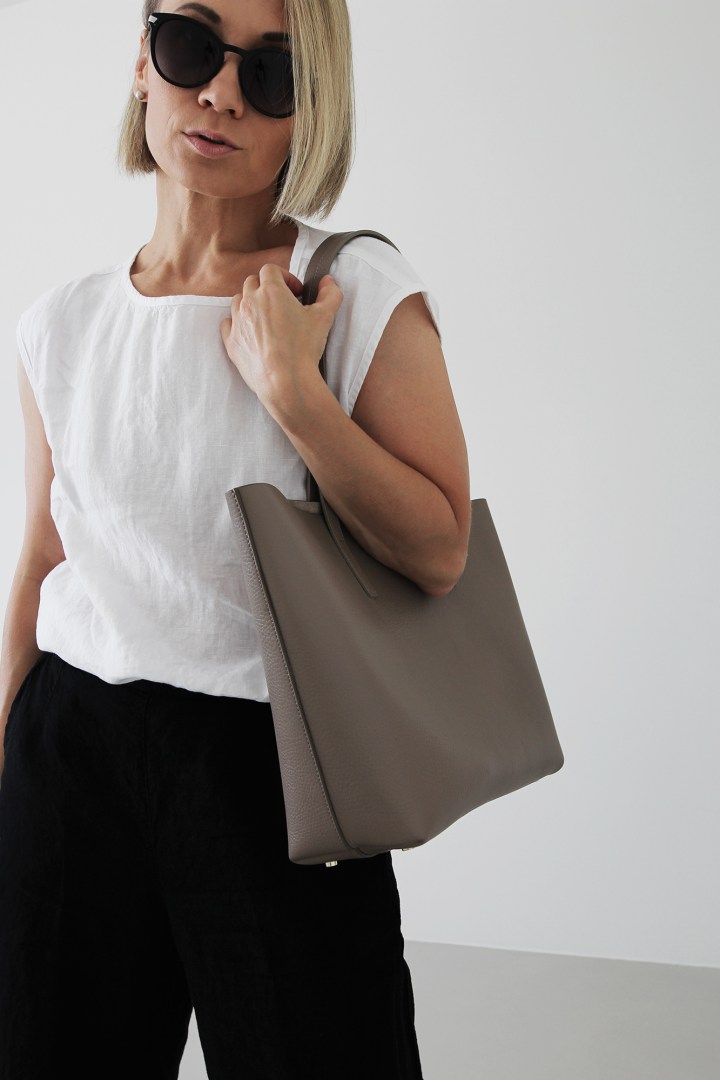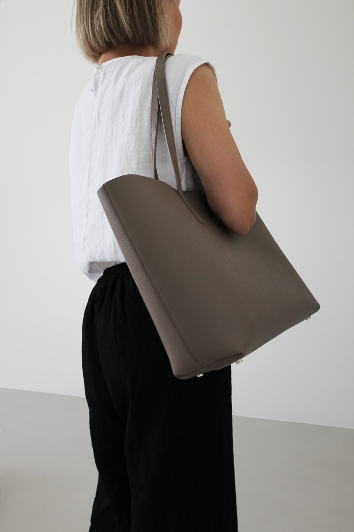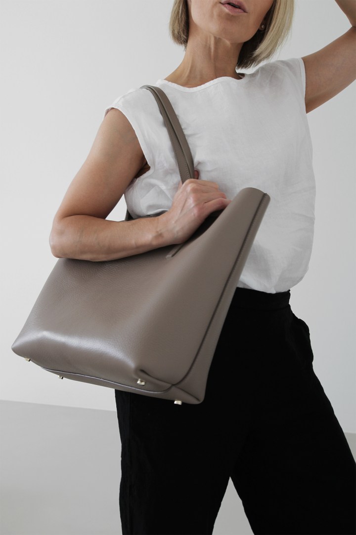 Nyt tarpeen paikkaa ajaton ja yksinkertainen Estelle shopper. Estelle on valmistettu korkealaatuisesta nahasta, jossa on luonnollinen pintakuvio. Laukun värisävy on tosi nätti, harmaanruskea taupe, joka on tällä hetkellä varmasti yksi lempiväreistäni. Estelle shopperin mukana tuli pienempi laukku, kaunis siro Balmuir clutch eli kirjekuorilaukku, joka sopii hyvin vaikka juhlallisempiin tilaisuuksiin.