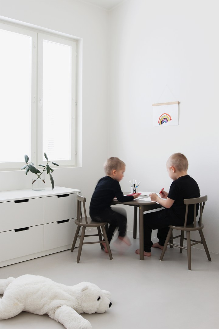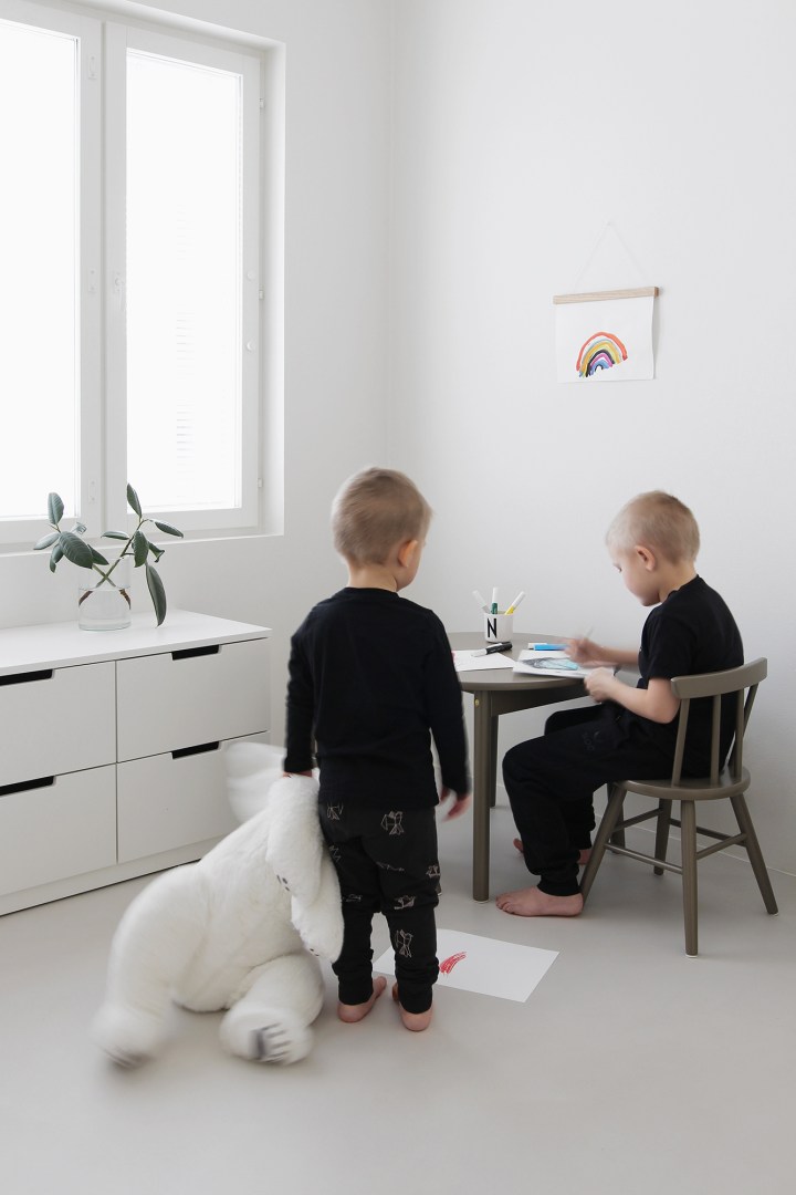 Samalla kuitenkin huomasin, ettei täysin valkoinen valaisin sovi makuuhuoneeseen, koska se häviää valkoisiin seiniin. Toki suunnitelmien mukaisten pellavaverhojen kanssa valkoinen olisi täydellinen match, mutta koska verhojen kanssa menee vielä tovi, etsintä jatkui. Makuuhuoneessa ei ole kuukausiin ollut mitään valoa, joten tarve oli kova.