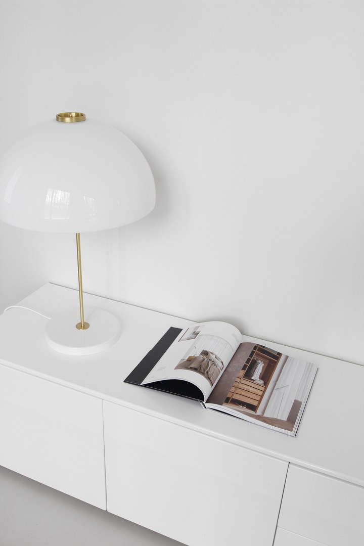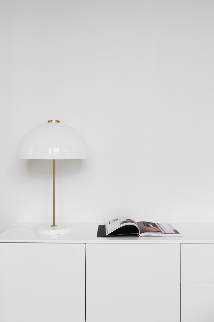 Selvisi, että kyseessä on suomalaisen Innoluxin Kupoli-valaisin, jonka on suunnitellut Yki Nummi vuonna 1960. Kyseisen vuosikymmenen muotoilu on aina puhuttanut itseäni, se on yksinkertaisen ajatonta ja funktionaalista, eikä siihen kyllästy. Tuolta vuosikymmeneltä tuntuu tulevan ne kuumimmat klassikot, joihin tämäkin valaisin lukeutuu.
