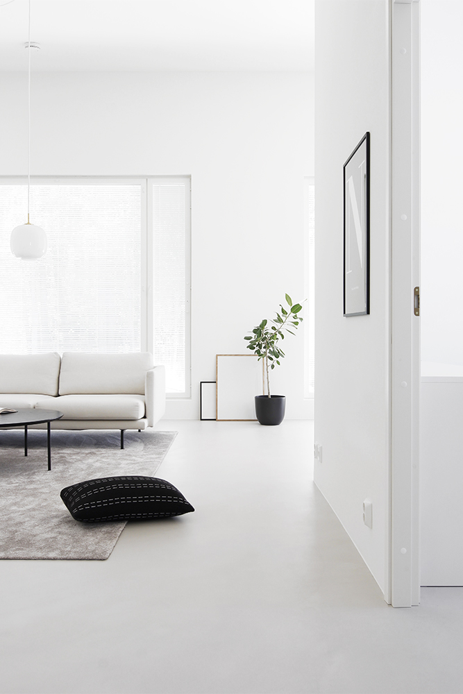 Suosittelenko betonilattiaa tai ottaisinko sen meille uudestaan? Vastaus on kyllä ja ei. Tykkään lattiasta kaikin puolin ihan älyttömästi ja rakastan listattomuutta, mutta kyllähän tuon jäljen takia on fiilikset hieman vaihdelleet. Olisi ollut kiva tietää ennakkoon, ettei lattiaa voi paikallisesti korjata, vaikka kuulemma jonkinlaisia pintanaarmuja vahalla saakin pois. Niitä kolhuja, naarmuja ja jälkiä tulee, se on vaan elämää, tiedän. Usein vertaakin moisia mielipahoja isompiin asioihin, jotta saa vähän perspektiiviä ja se helpottaa. Kun lattiaa lähdetään korjaamaan, toivon että homma hoituisi mahdollisimman mutkattomasti.