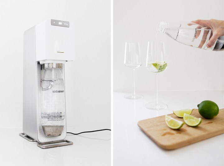 Olimme eräs ilta ystäviemme luona kylässä ja koska olin holittomalla, emäntä pisti pöytään pullollisen hapokasta juomaa. Kauhean näppärästi se kävikin: hanasta vettä, pari sekuntia hapotusta ja siitä vaan nauttimaan lasillinen jos toinenkin. Ei mitään kaupan valmista pullojuomaa, vaan juurikin sillä SodaStreamilla tehtynä, joka aiemmin pisti hieman huvittamaan. Ja olipa se vielä aika tyylikäs laite, ei mikään avaruussukkula, joka omissa mielikuvissa on pyörinyt. Tuolla samaisella hetkellä tiesin, että meille tulee oma SodaStream. Piste.