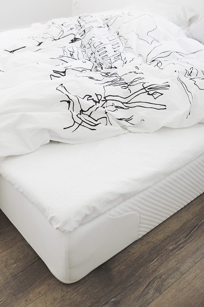Meille tuli Cloud ja se mukautuu kehoon välittömästi. Ei ole väliä miten paljon painat tai minkä mallinen olet, kun sama patja menee kaikille. Saimme siis miehen kanssa täysin samat patjat sekä yhteisen petarin. Cloud on todella pehmeä, nimensä mukaisesti pilvimäinen patja, jonka päällä keho leijuu. Olemme nukkuneet Tempureilla nyt puolisen vuotta. Olen ollut todella – siis todella – tyytyväinen. Vaikka unet ovat välillä jääneetkin melko lyhyiksi, nukun joka yö yllättävän syviä unia. En vaihda asentoa tai pyöri pitkin yötä, mitä saatoin edellisissä sängyissä tehdä. Otan yhden asennon ja siinä sitten nukun. Huomasin, että lapsikin nukkuu meidän sängyssä todella hyvin, vaikka välillä aivan poikittain onkin.