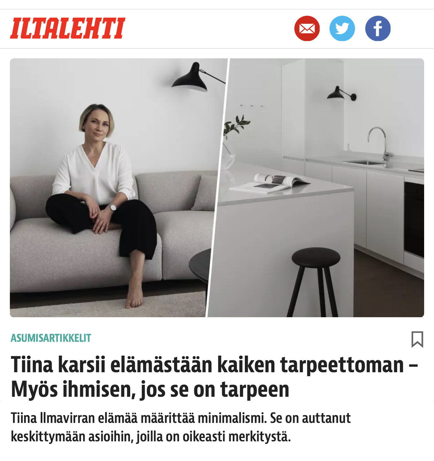 Monet kotimaiset sekä ulkomaiset mediat ovat haastatelleet minua. Aiheena on ollut koti, asuminen, sisustus ja minimalismi. Olen vieraillut myös podcasteissa ja ollut Stockmann Hullujen Päivien kasvona.